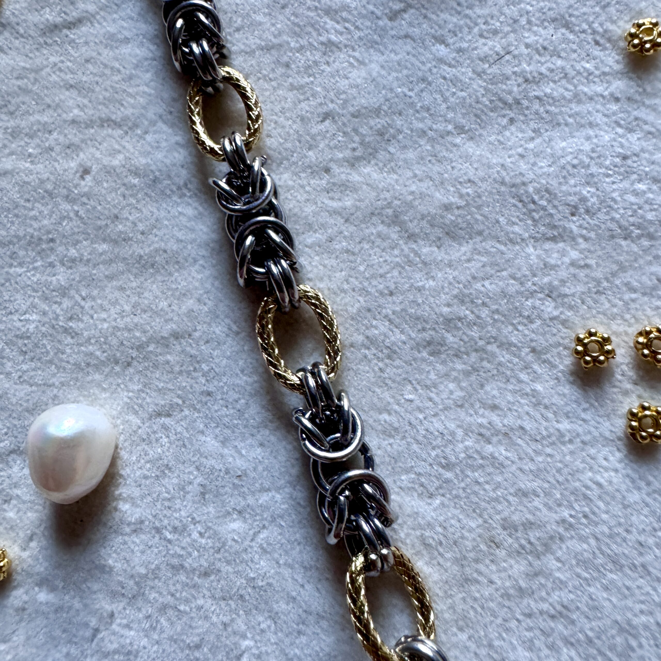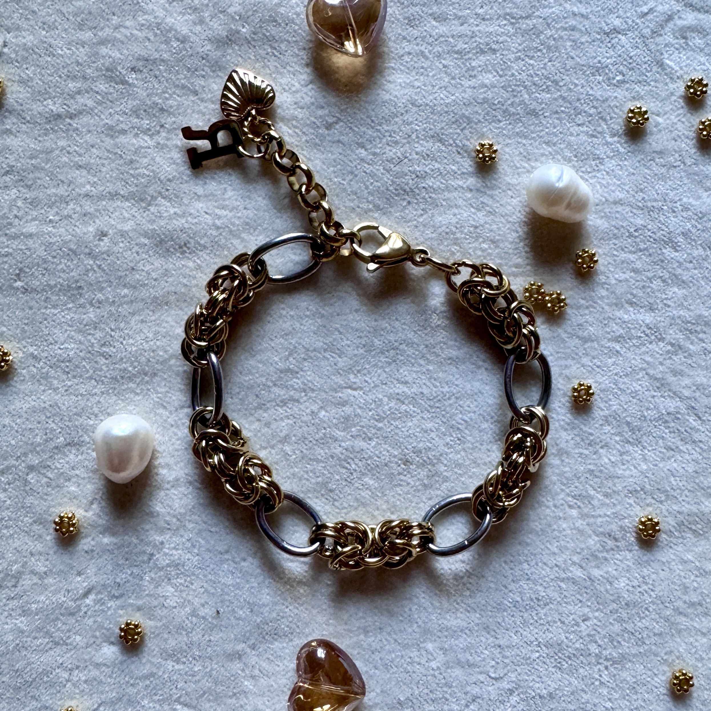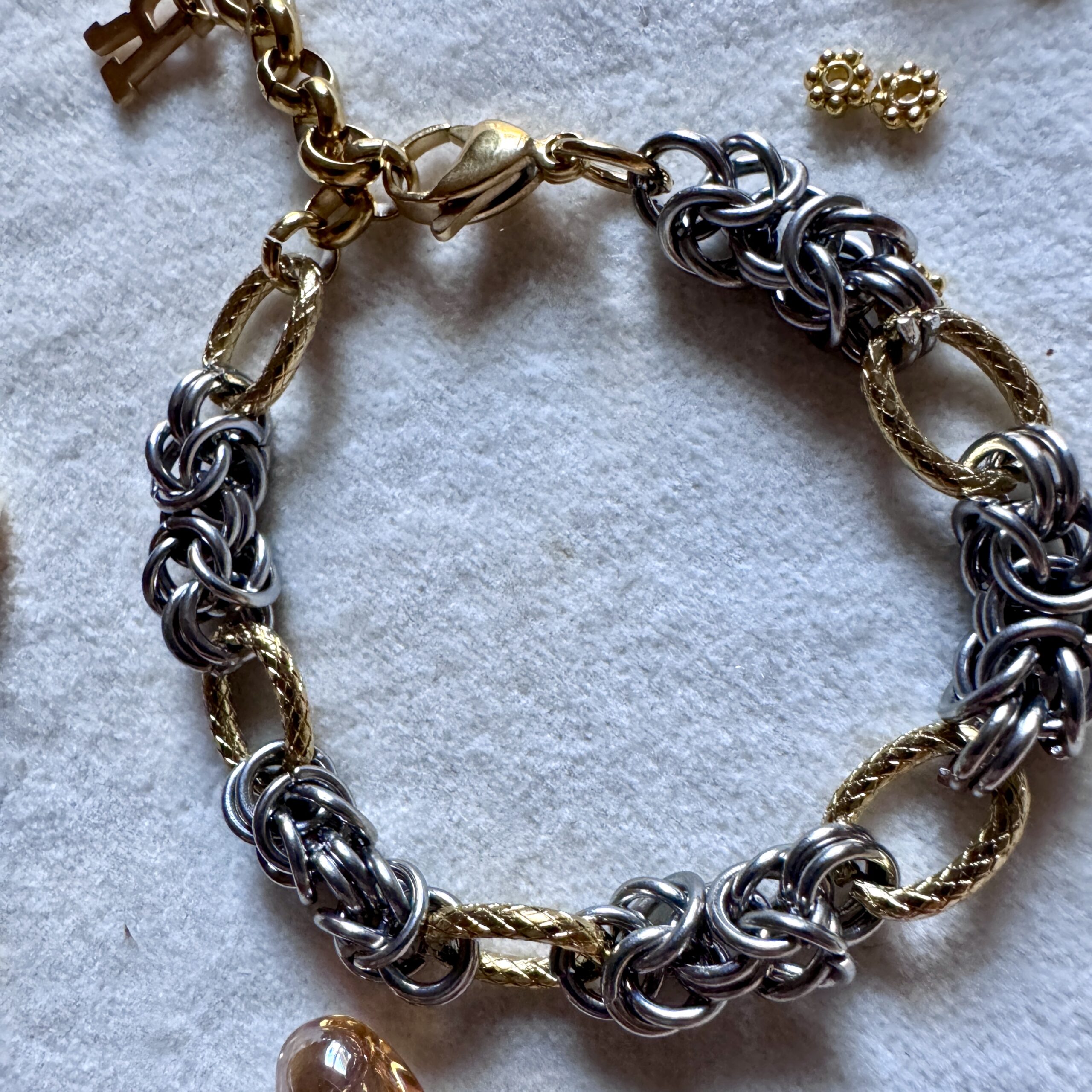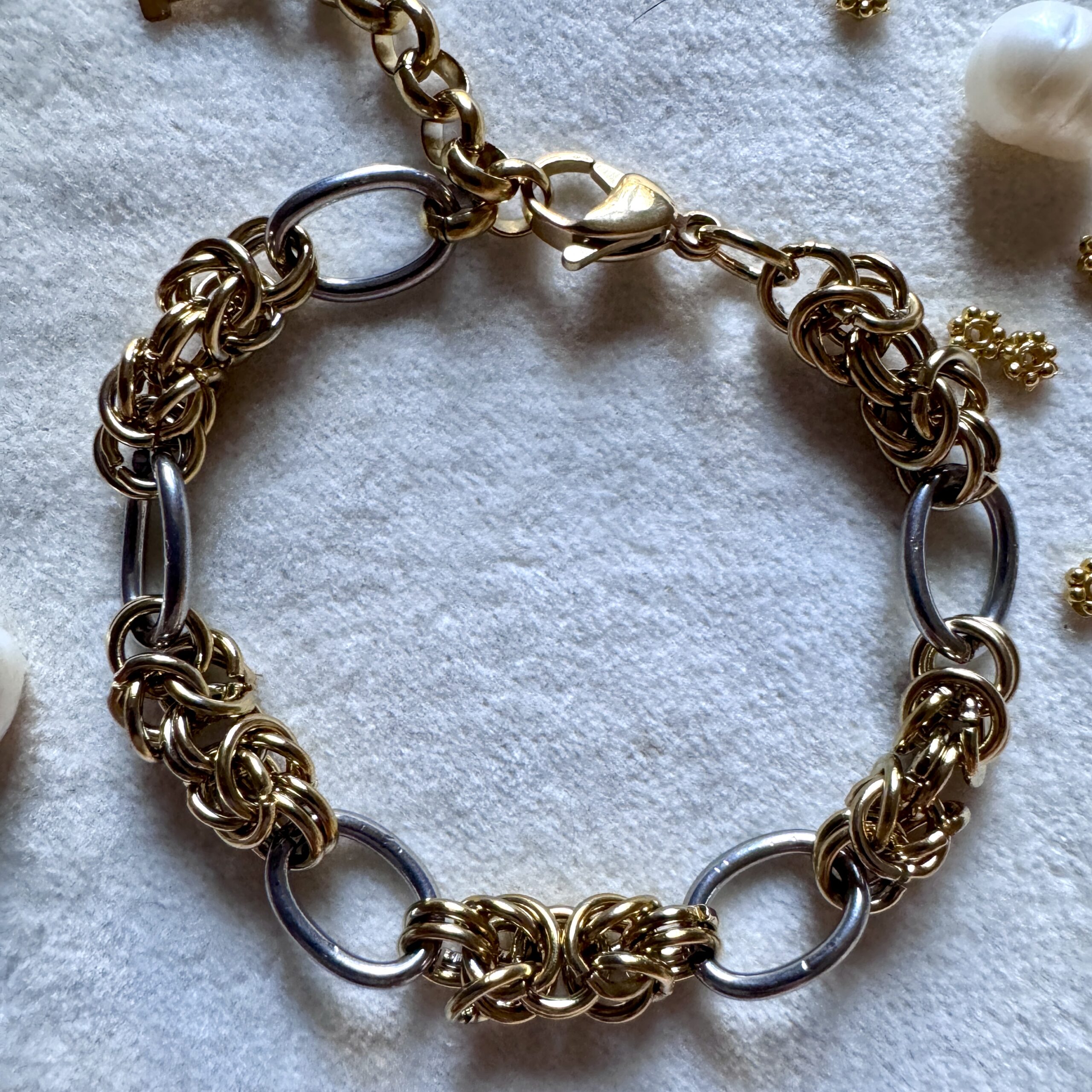 - Bracelet en acier inoxydable doré 18 carats et argent