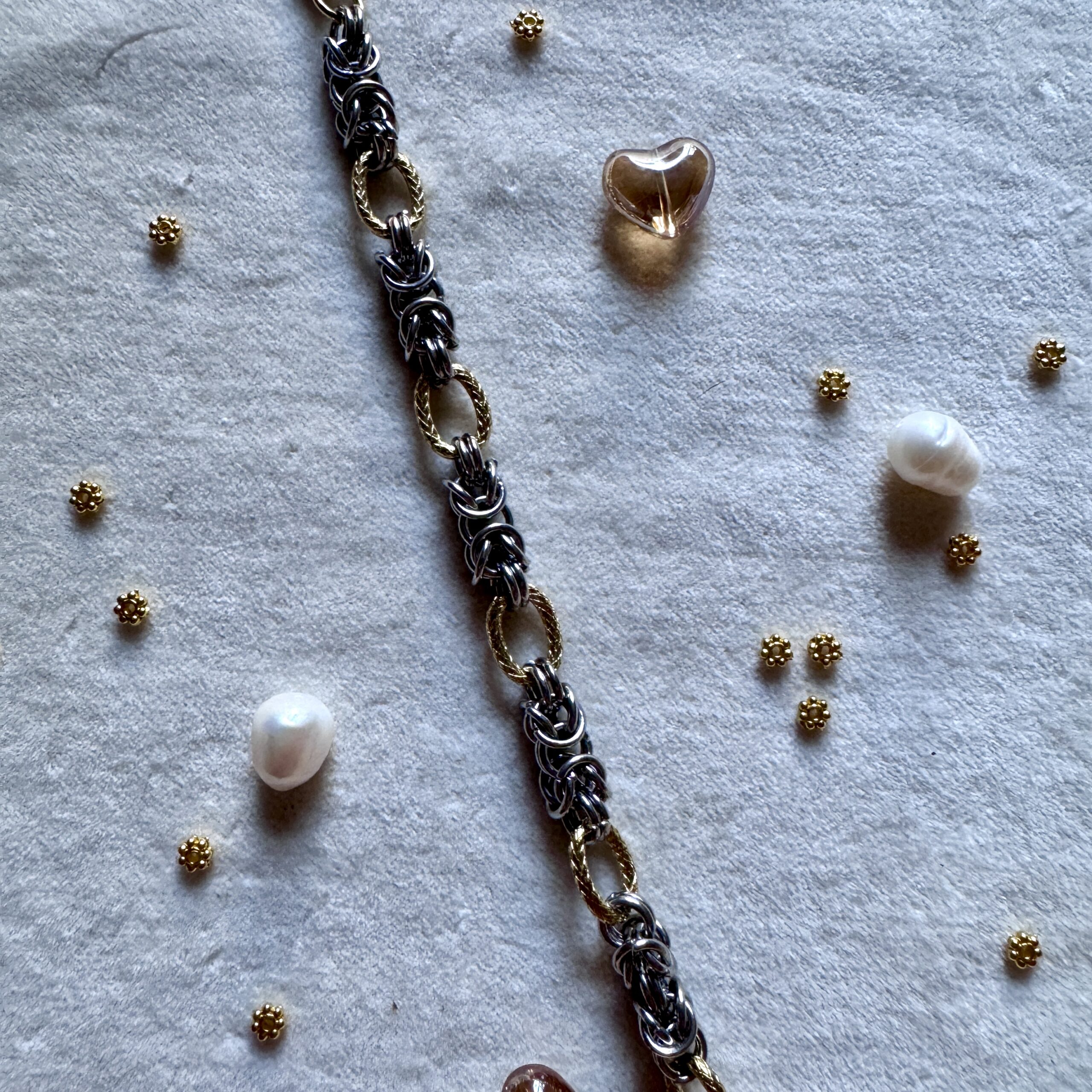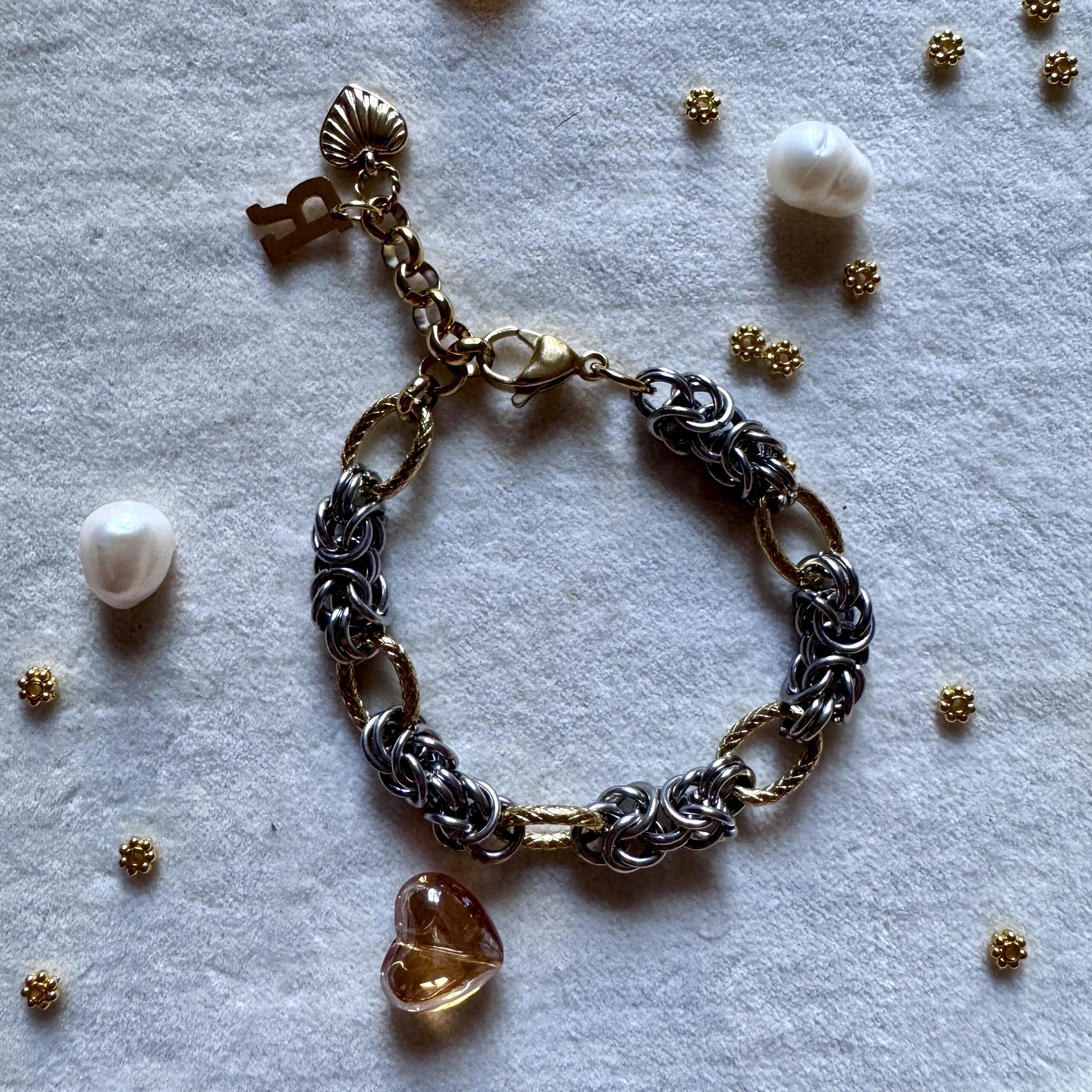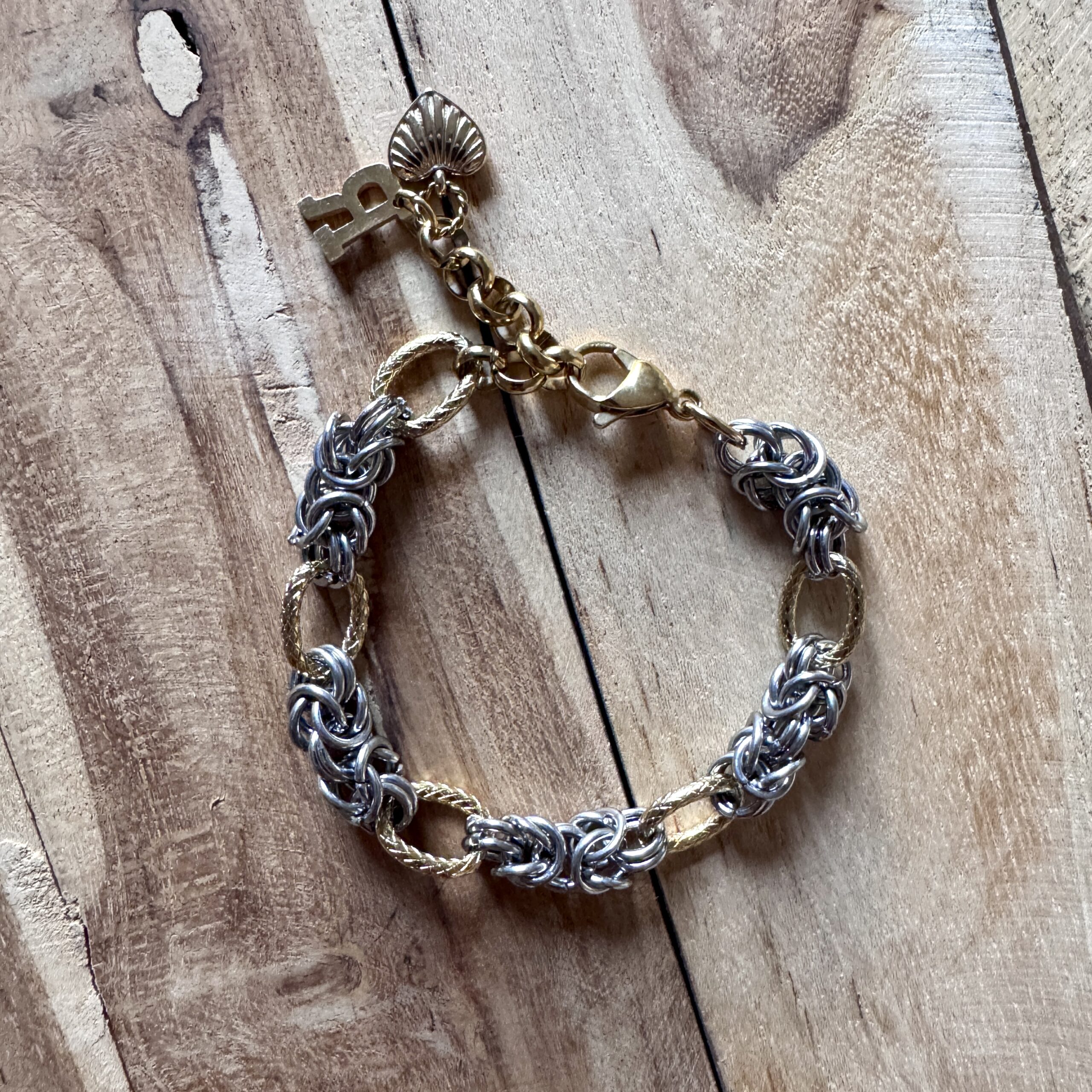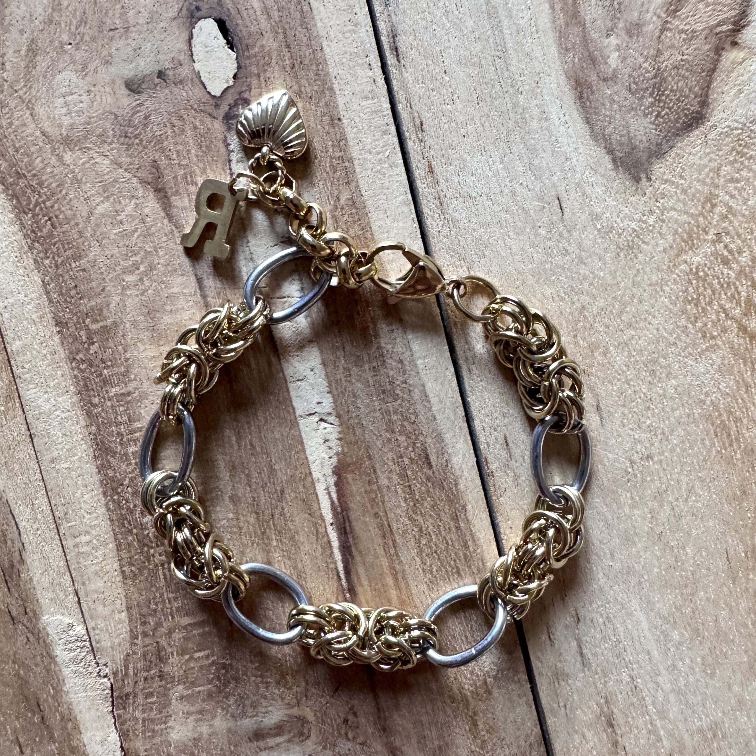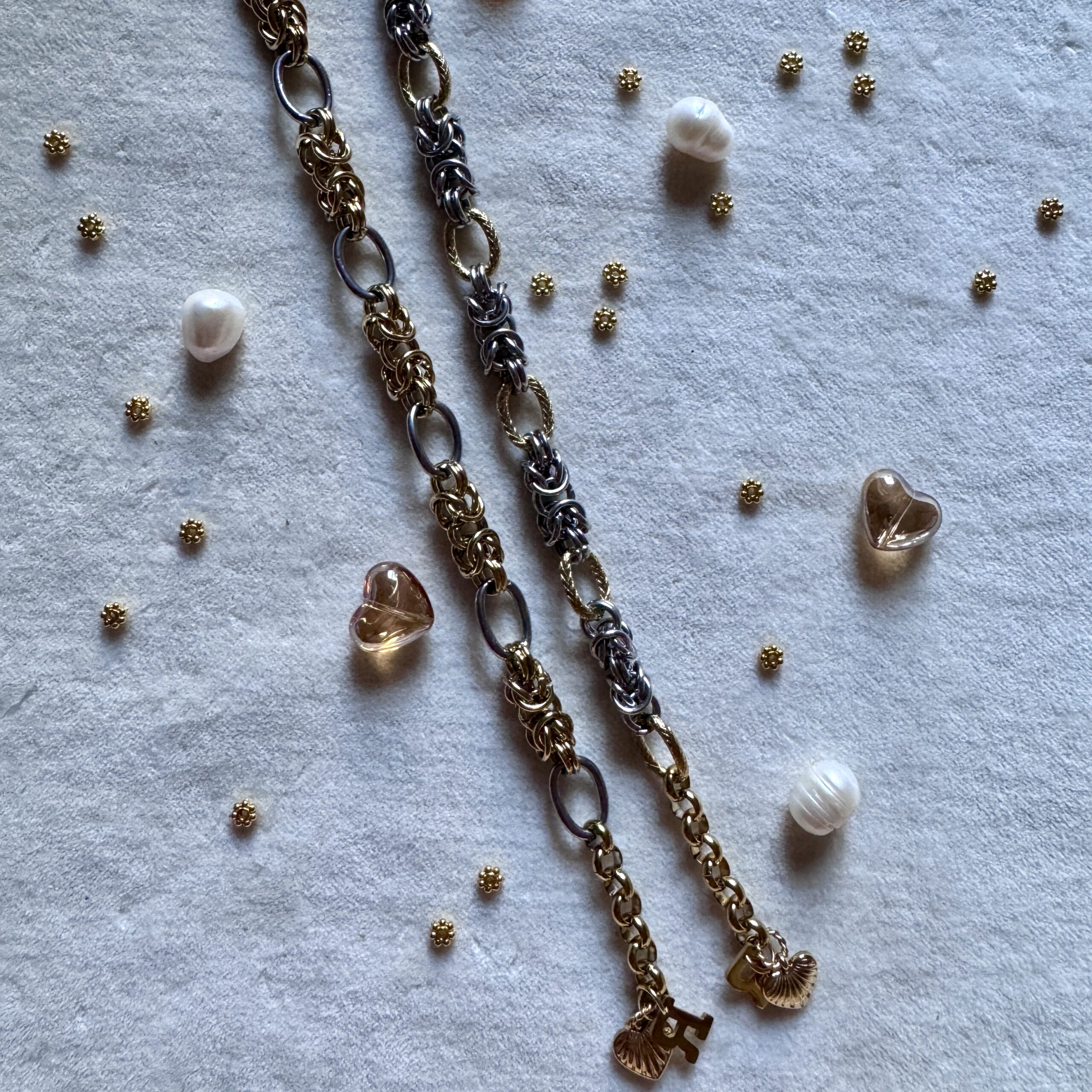 - Bracelet en acier inoxydable doré 18 carats et argent