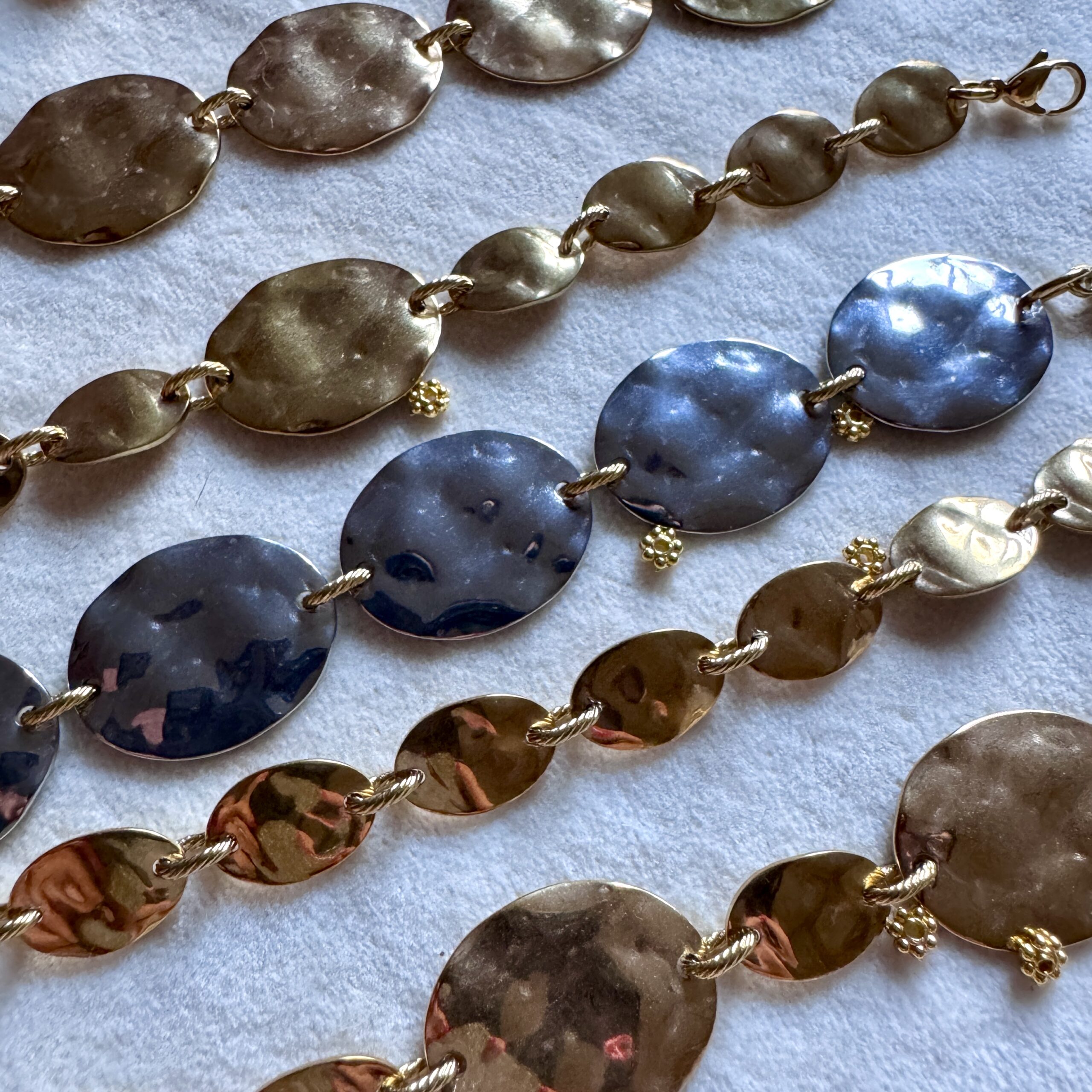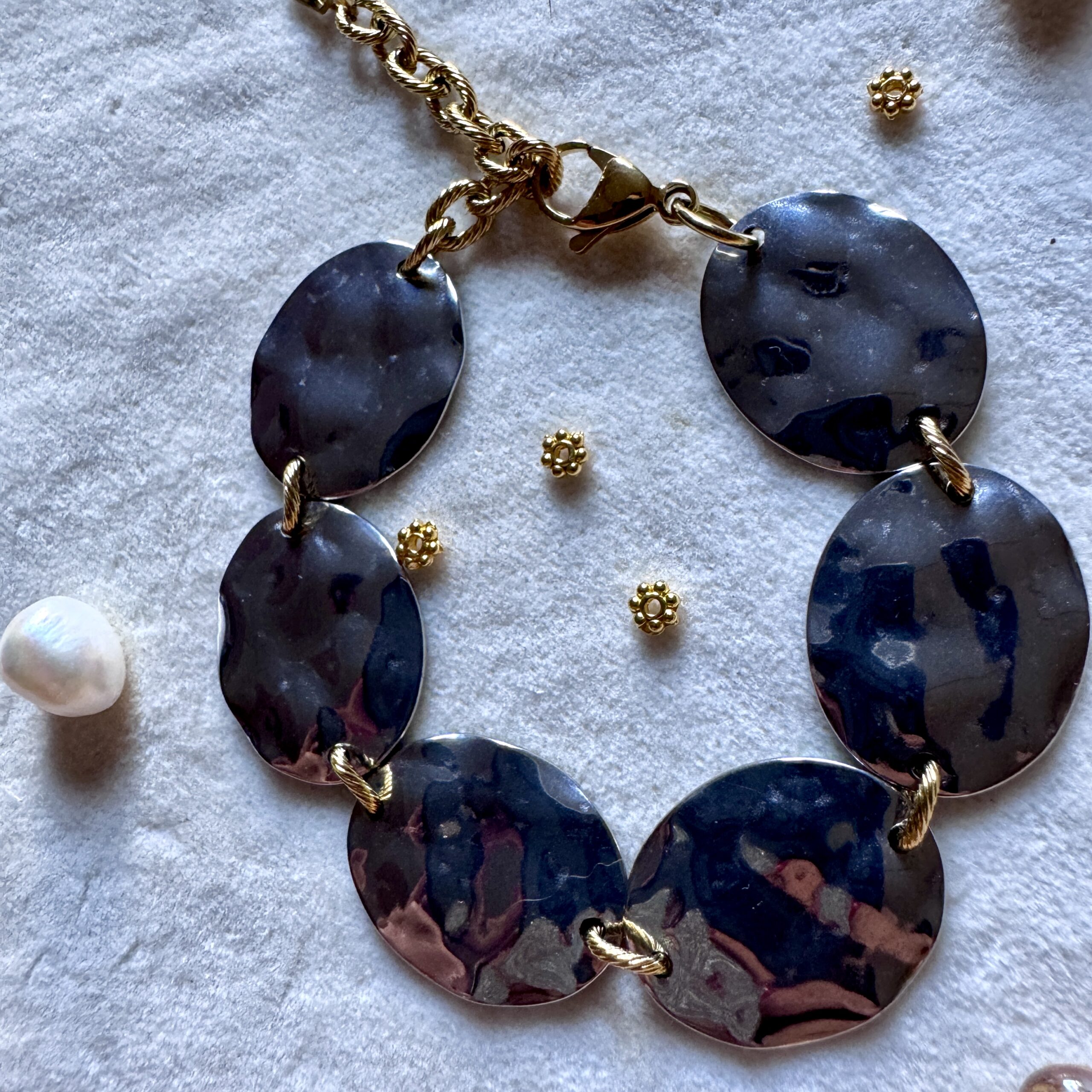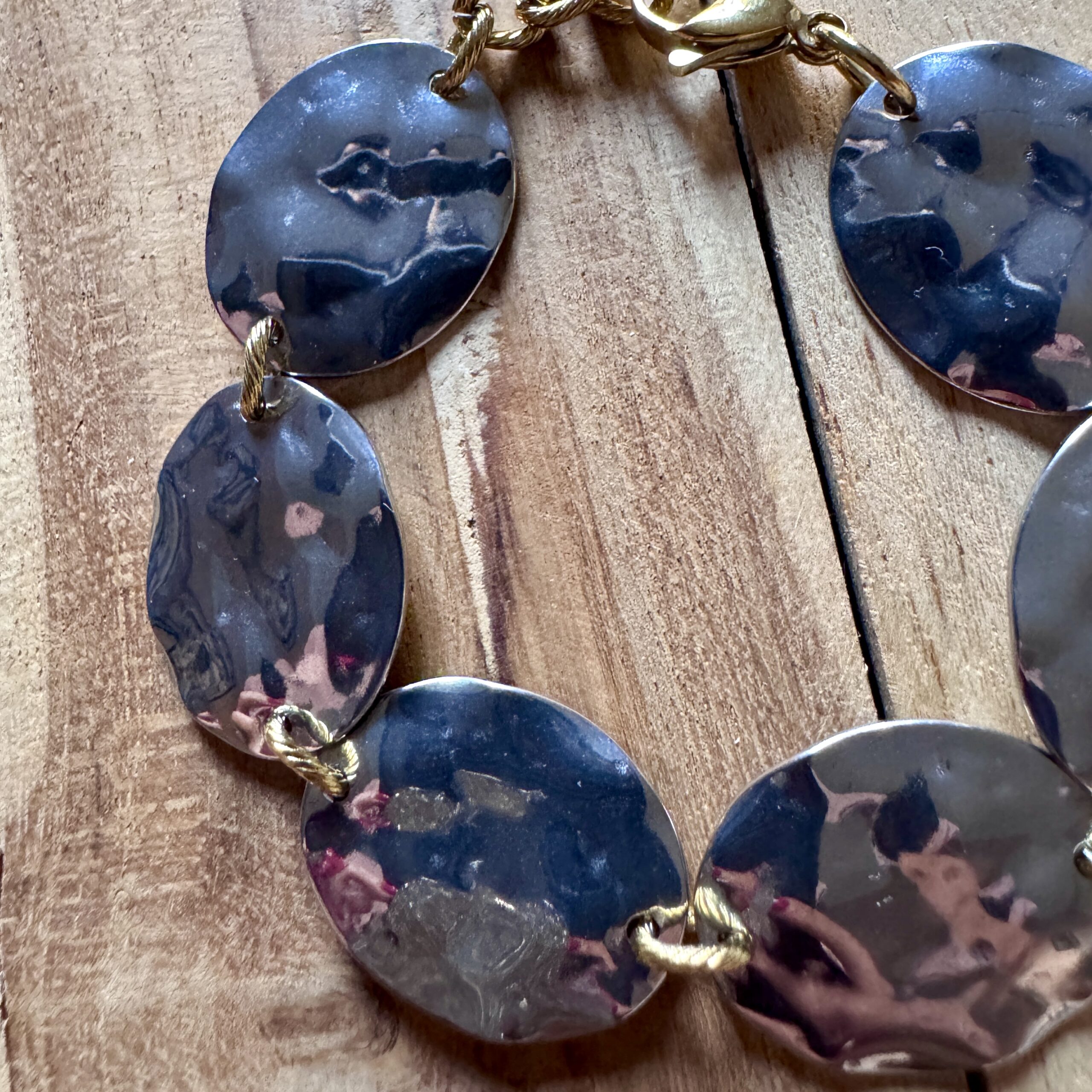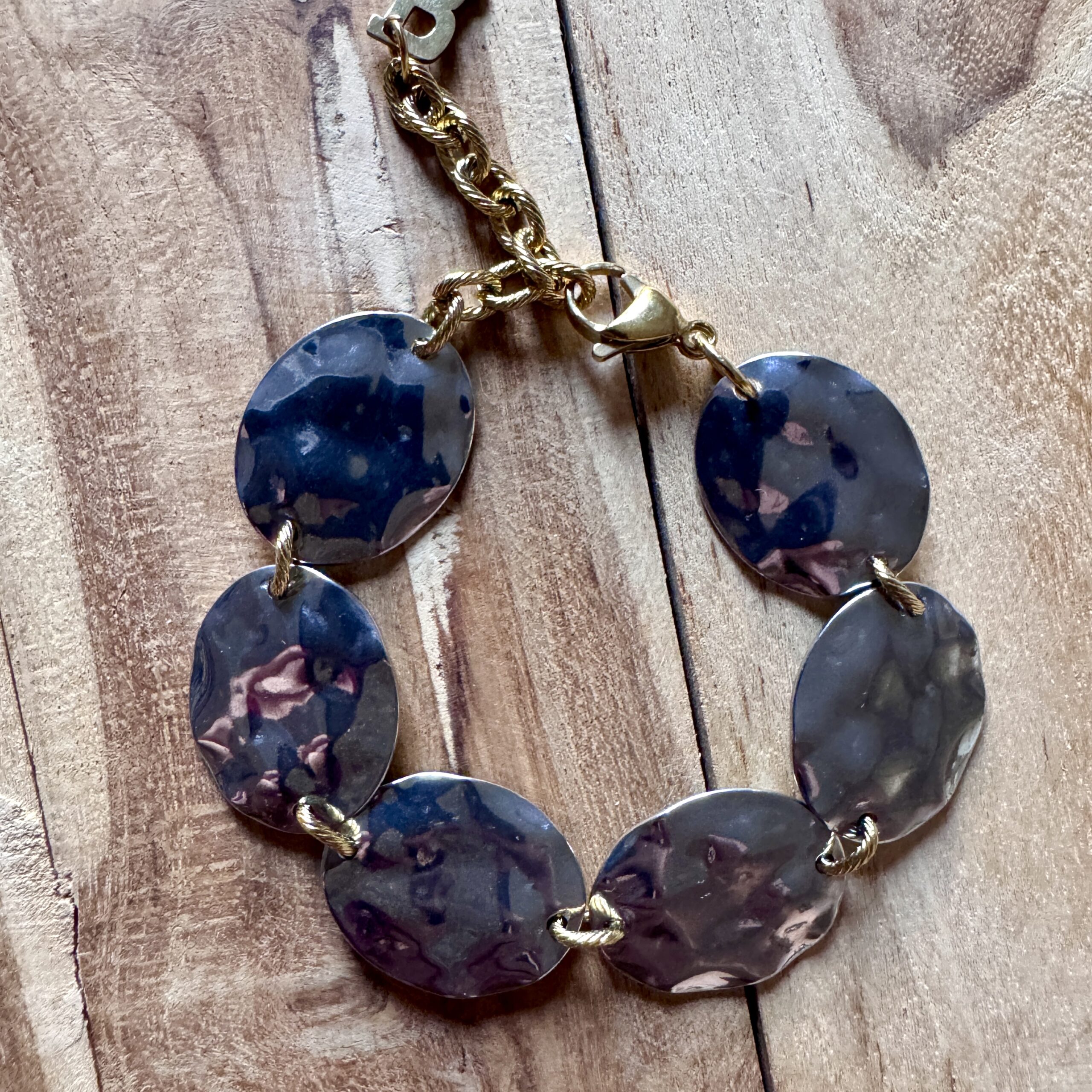 Bracelet en acier inoxydable doré 18 carats et argent 20 cm ajustable Bijoux Hypoallergénique, garantis sans nickel et résistant à la vie Expédition Bijoux soigneusement emballés dans une enveloppe à Bulles Expédition sous 24/48h (jours ouvrés) Frais de port OFFERT à partir de 60€ de commande   Ce bijou est assemblé à la main dans…