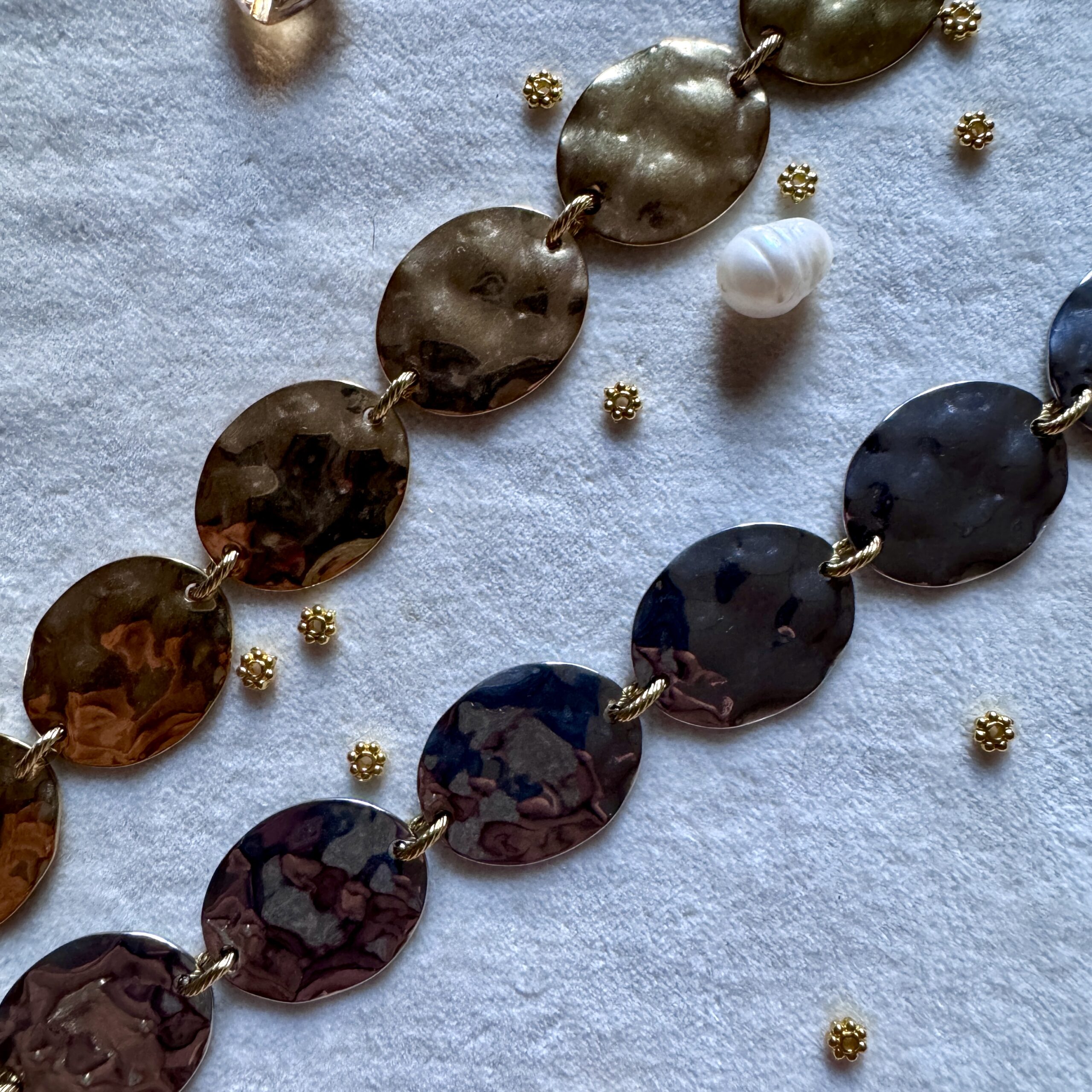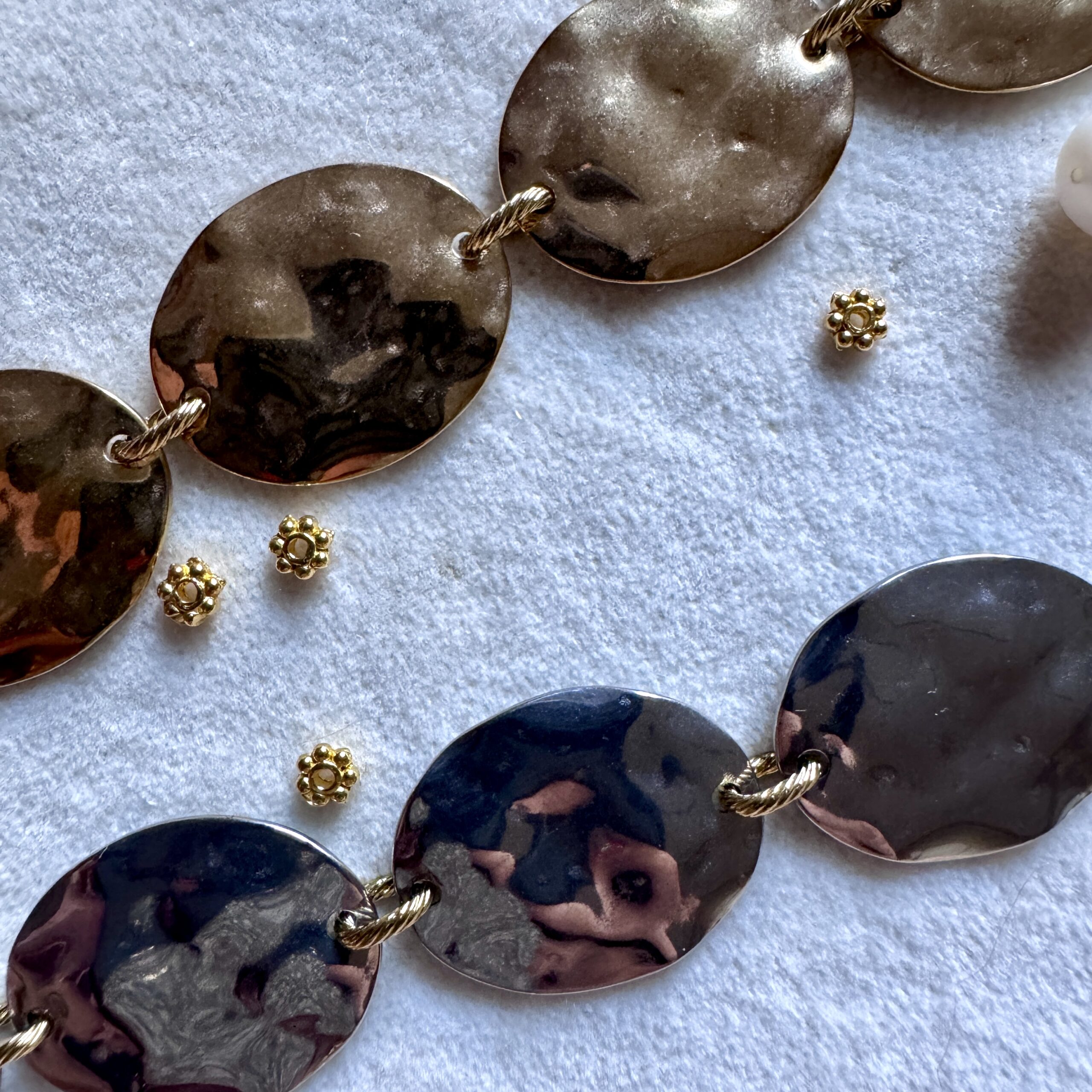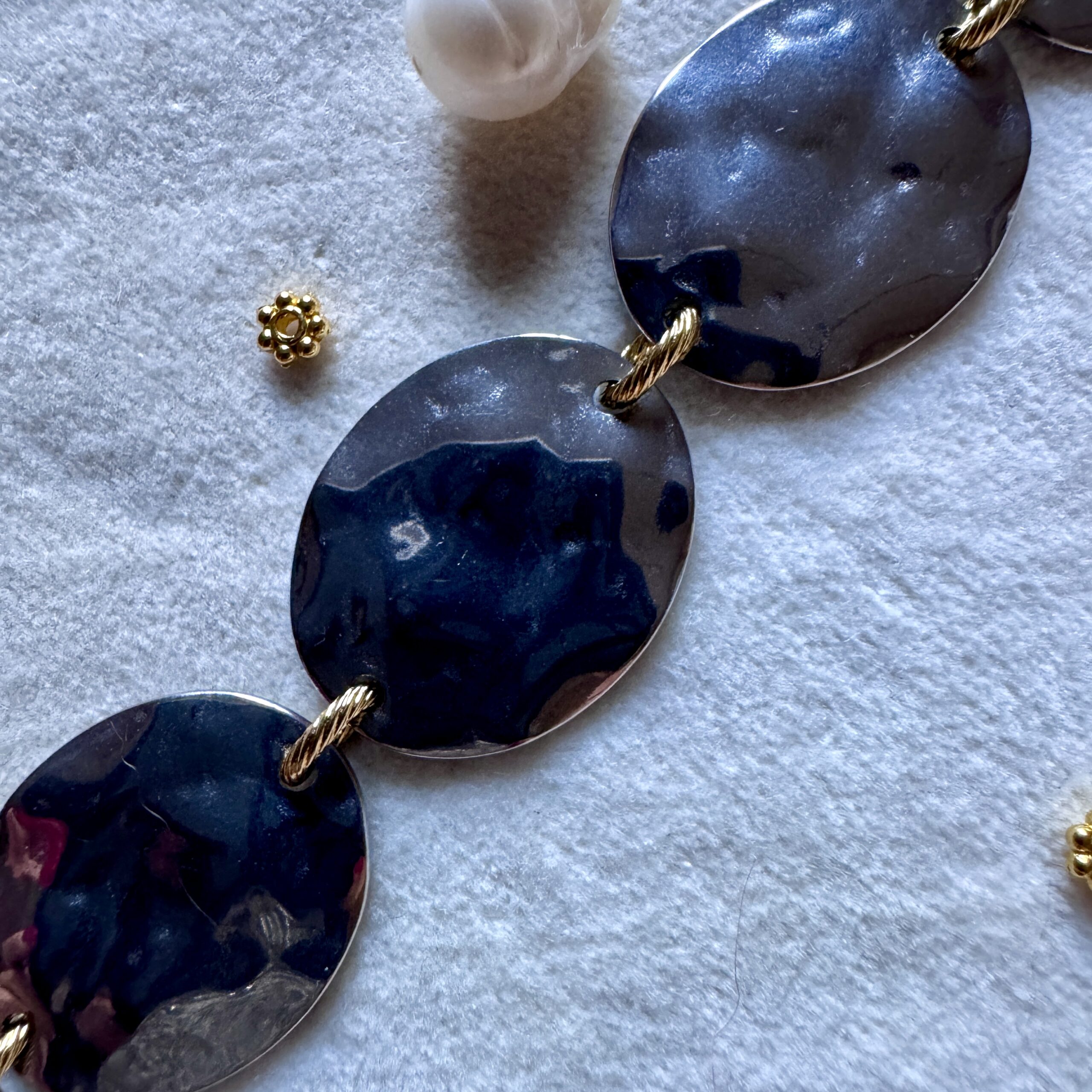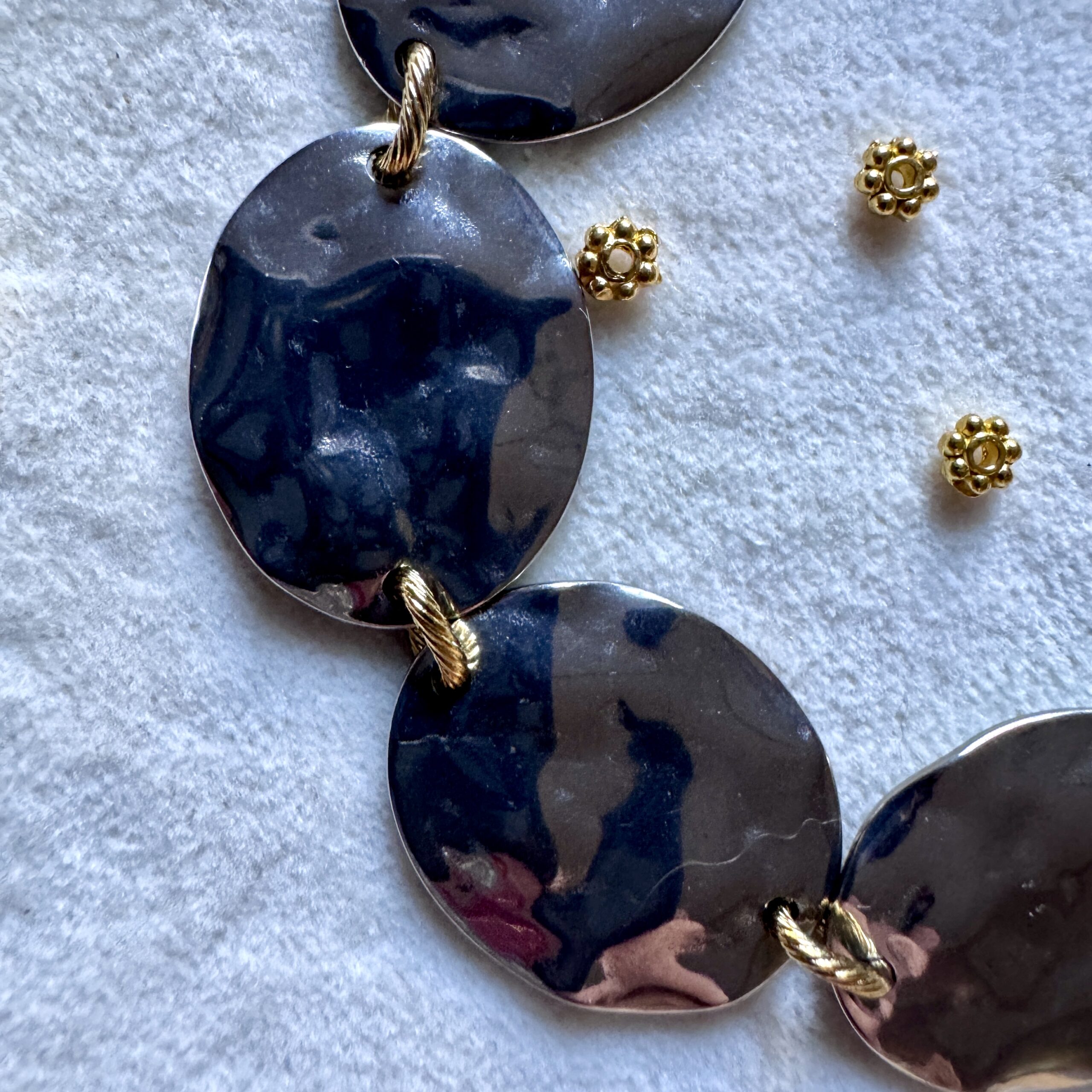 Bracelet en acier inoxydable doré 18 carats et argent 20 cm ajustable Bijoux Hypoallergénique, garantis sans nickel et résistant à la vie Expédition Bijoux soigneusement emballés dans une enveloppe à Bulles Expédition sous 24/48h (jours ouvrés) Frais de port OFFERT à partir de 60€ de commande   Ce bijou est assemblé à la main dans…