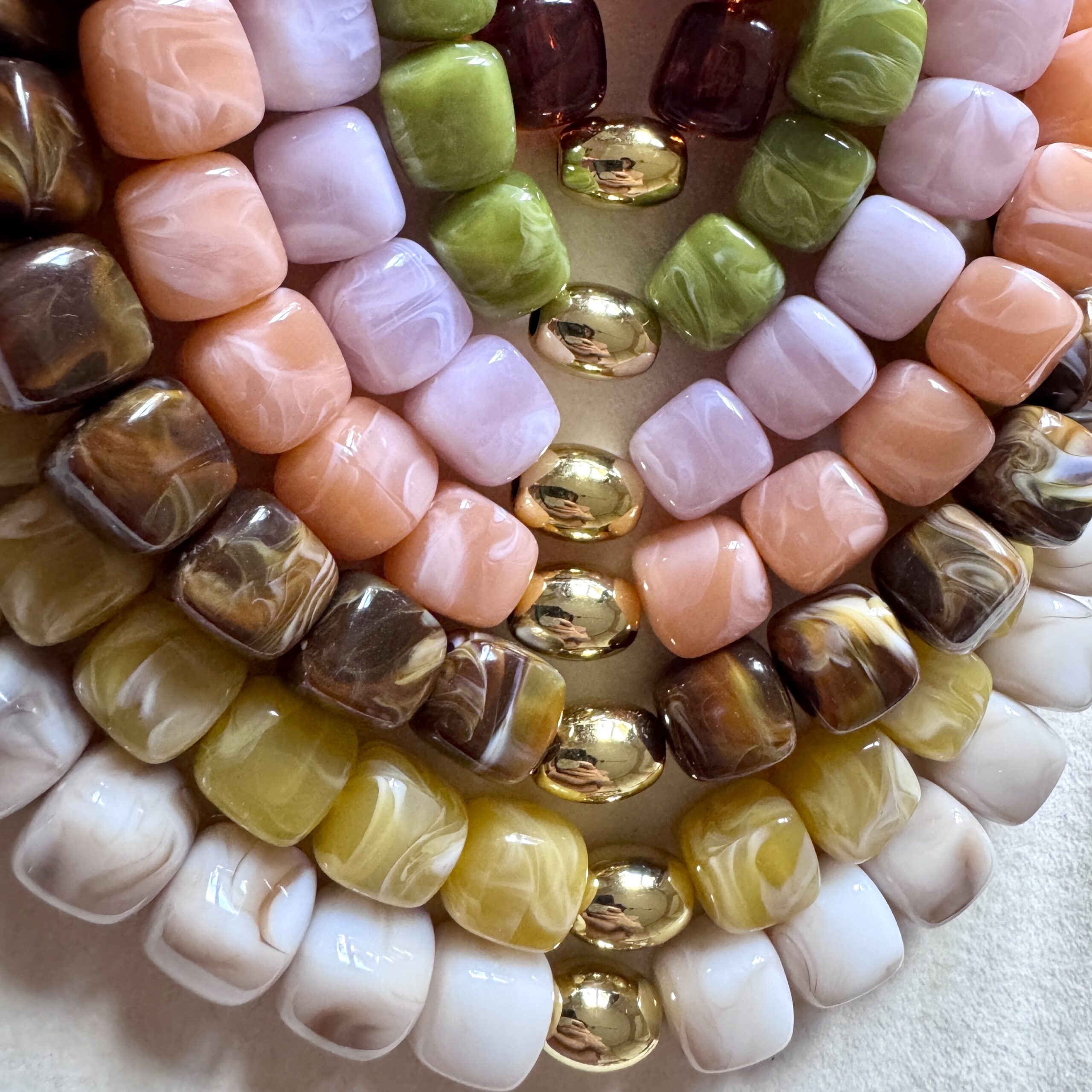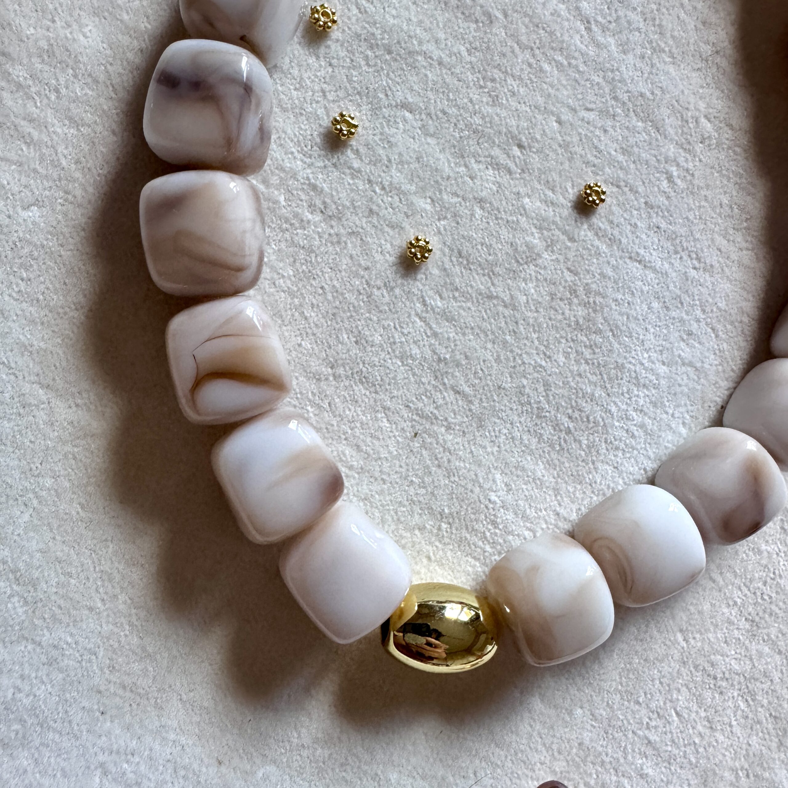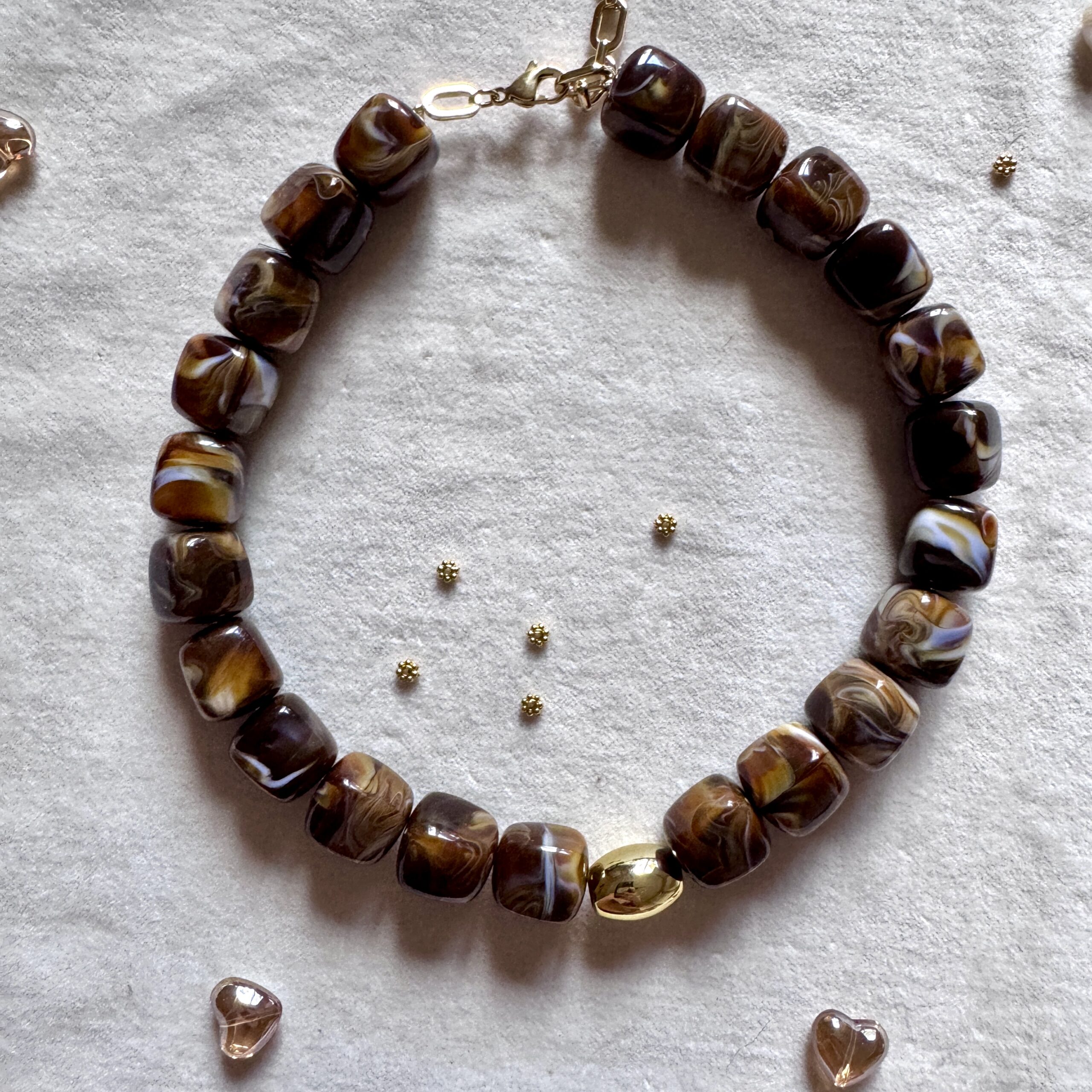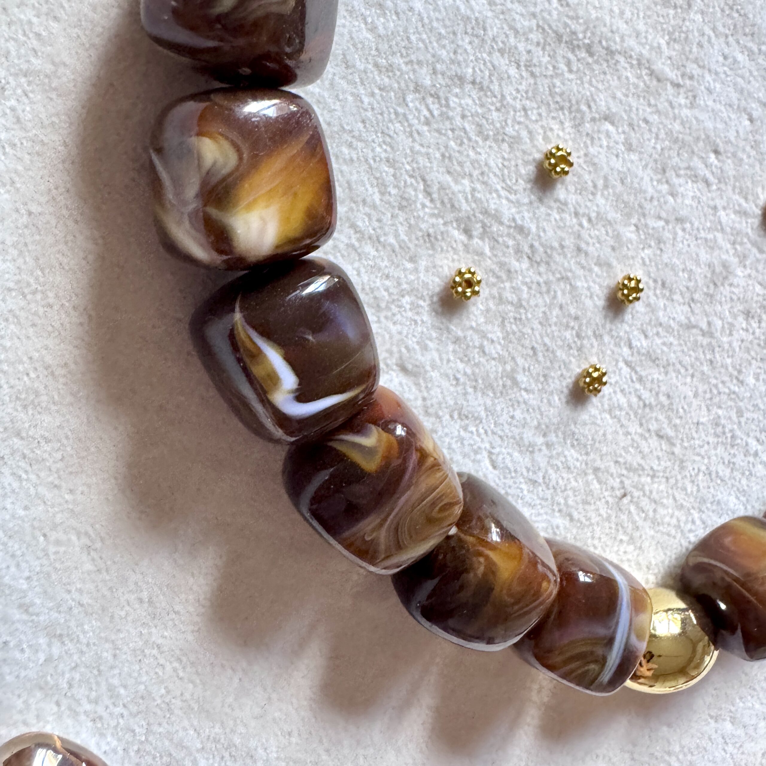 - Collier en en perles acétate et acier inoxydable doré