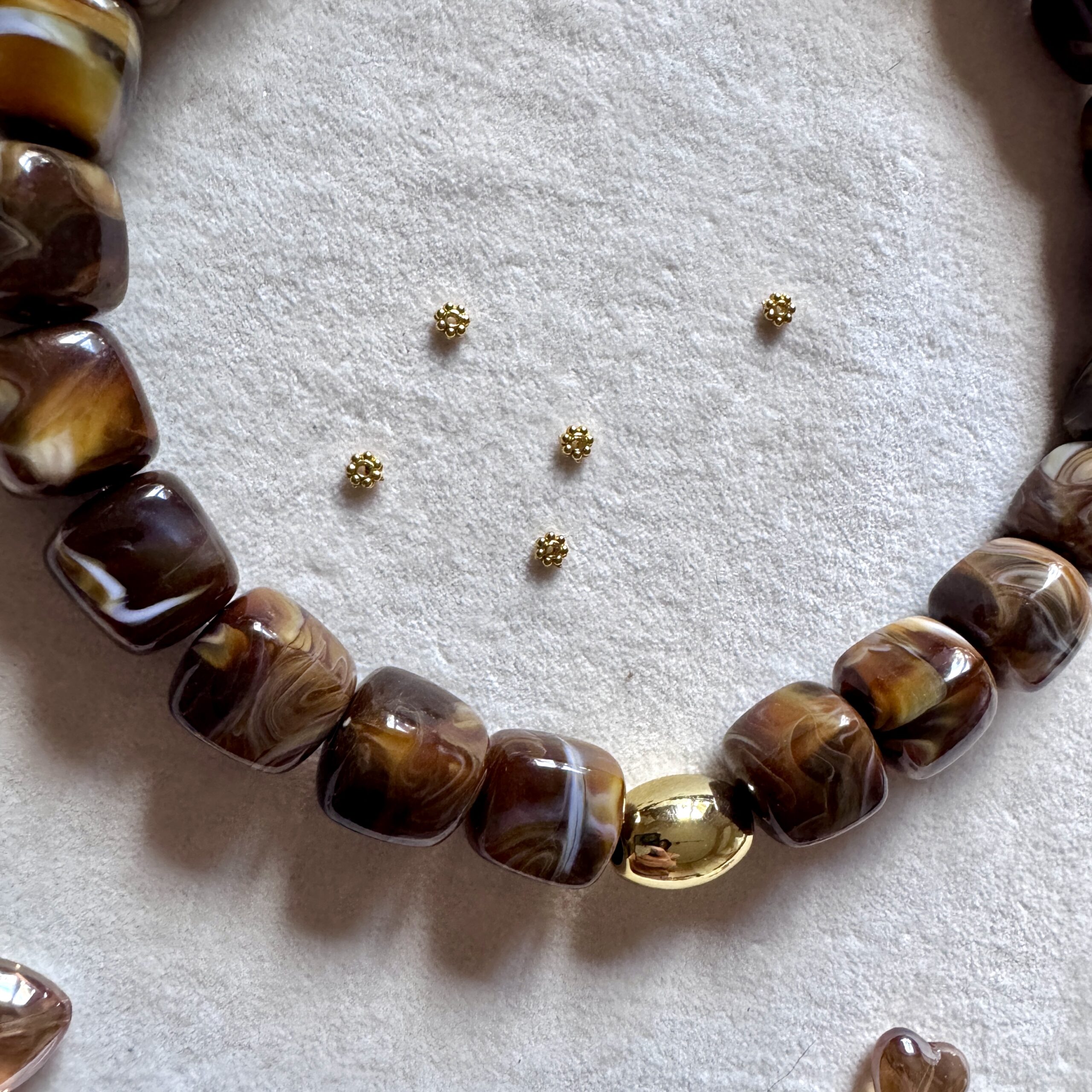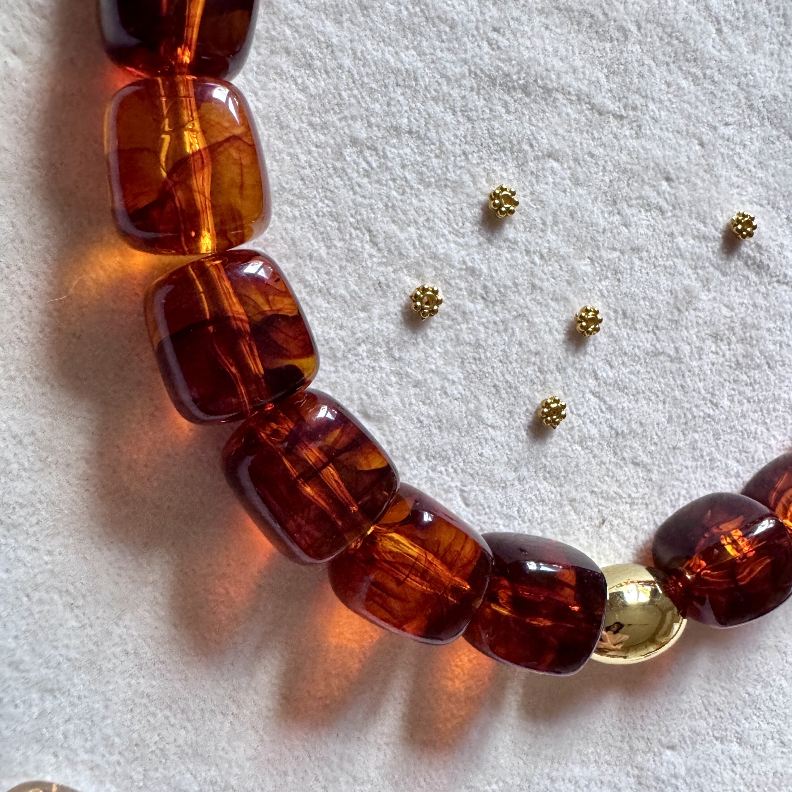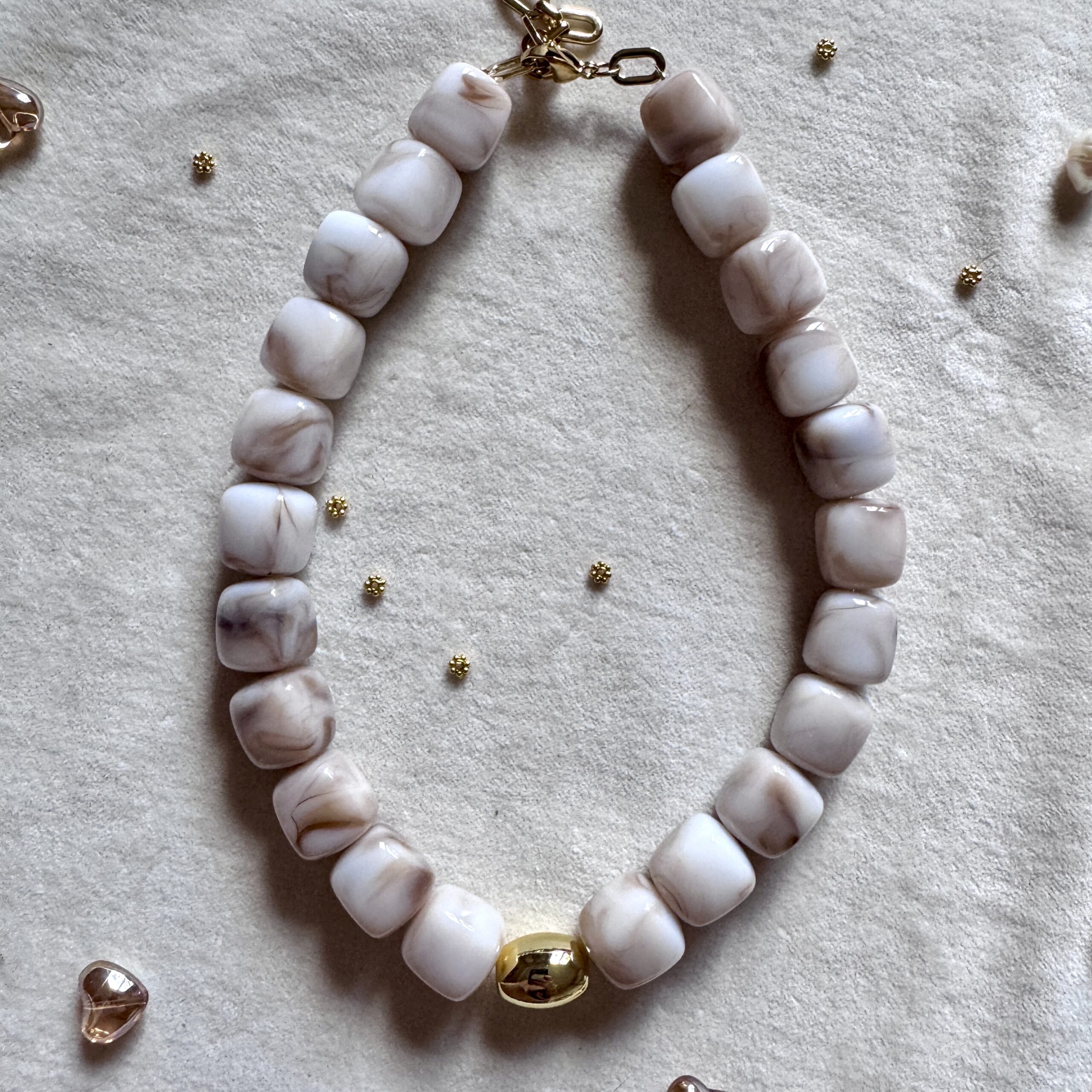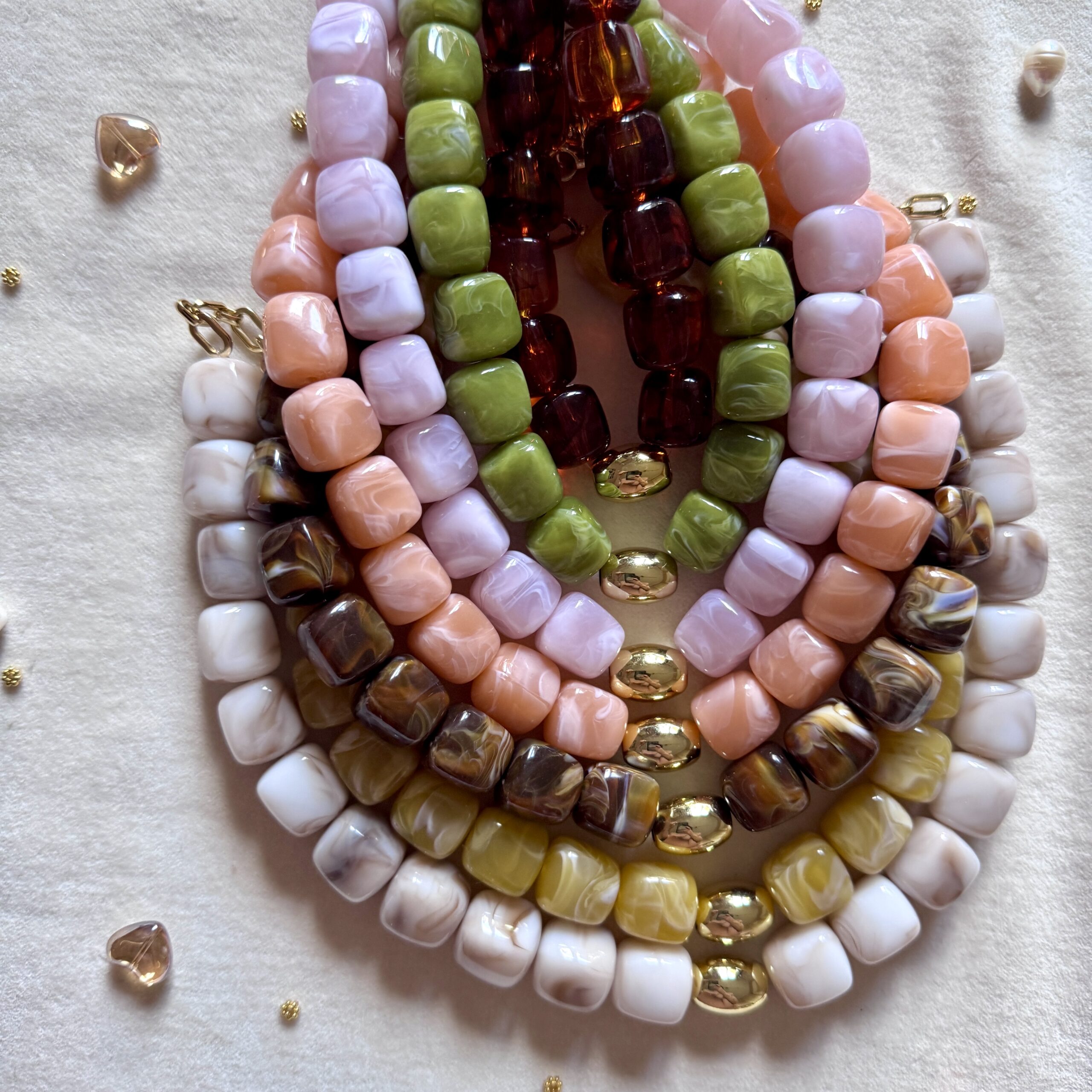 - Collier en en perles acétate et acier inoxydable doré