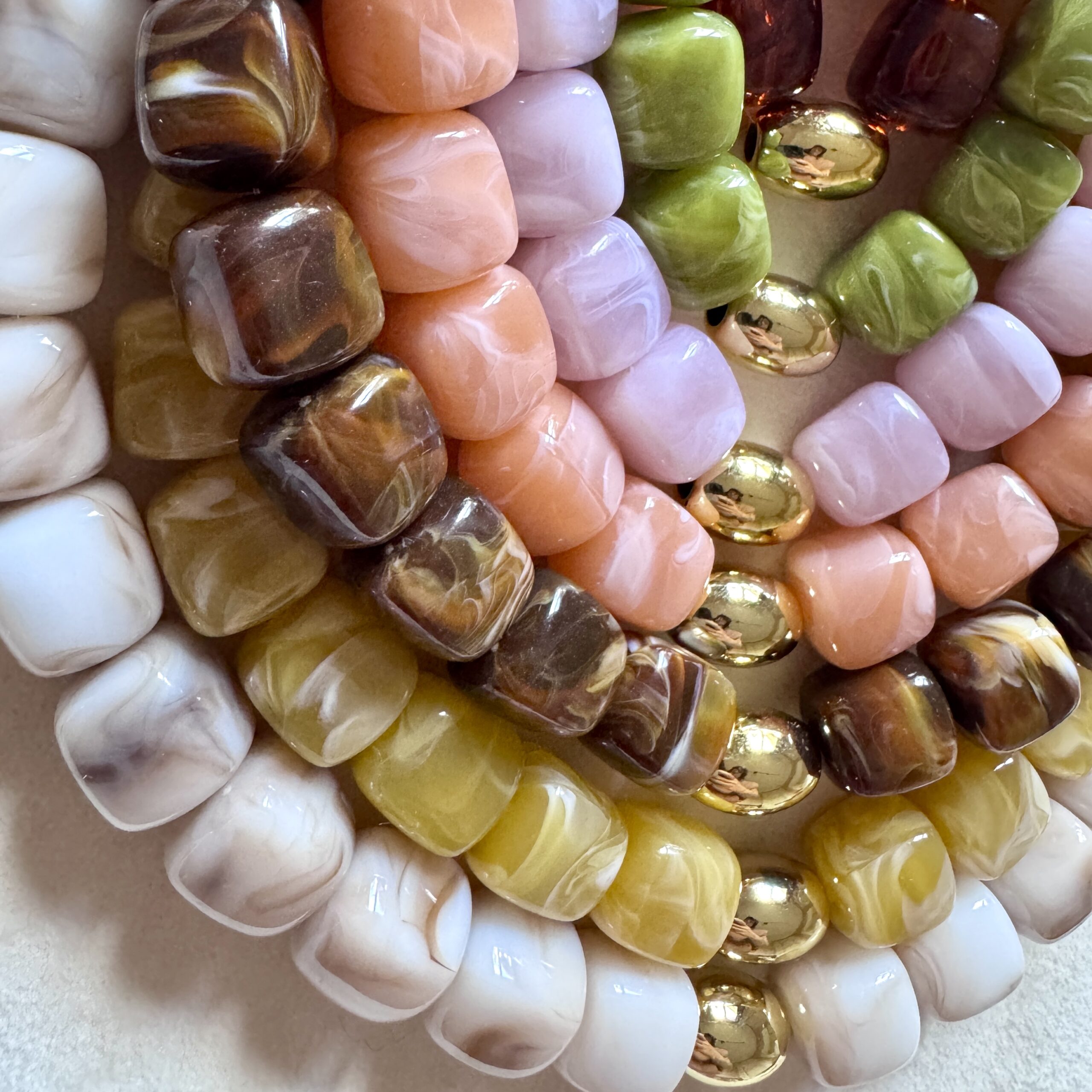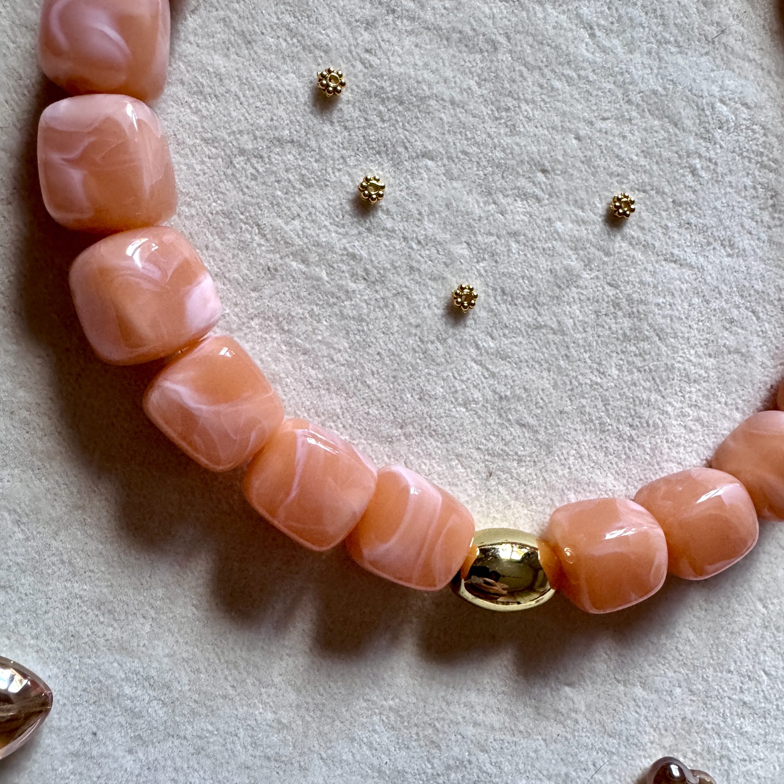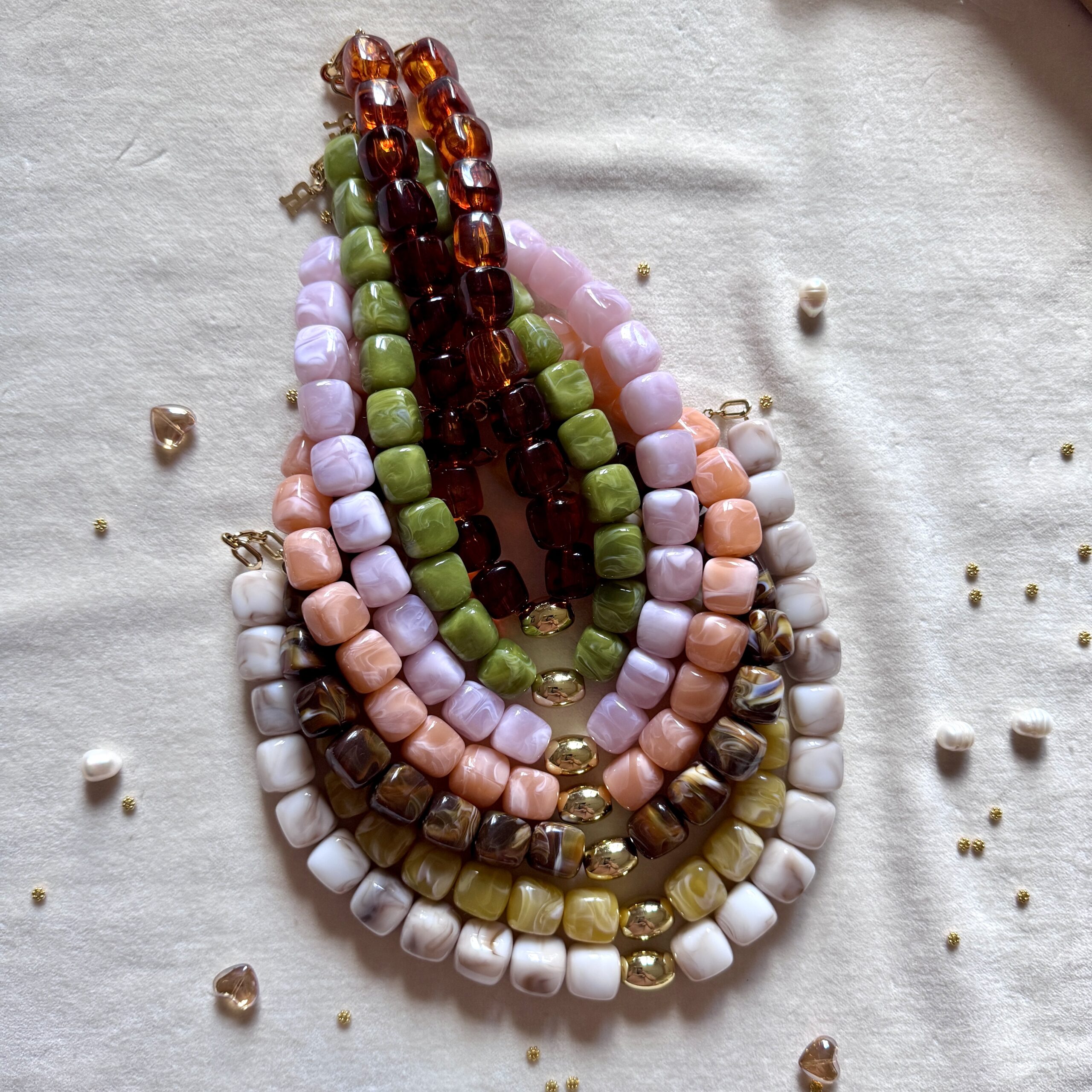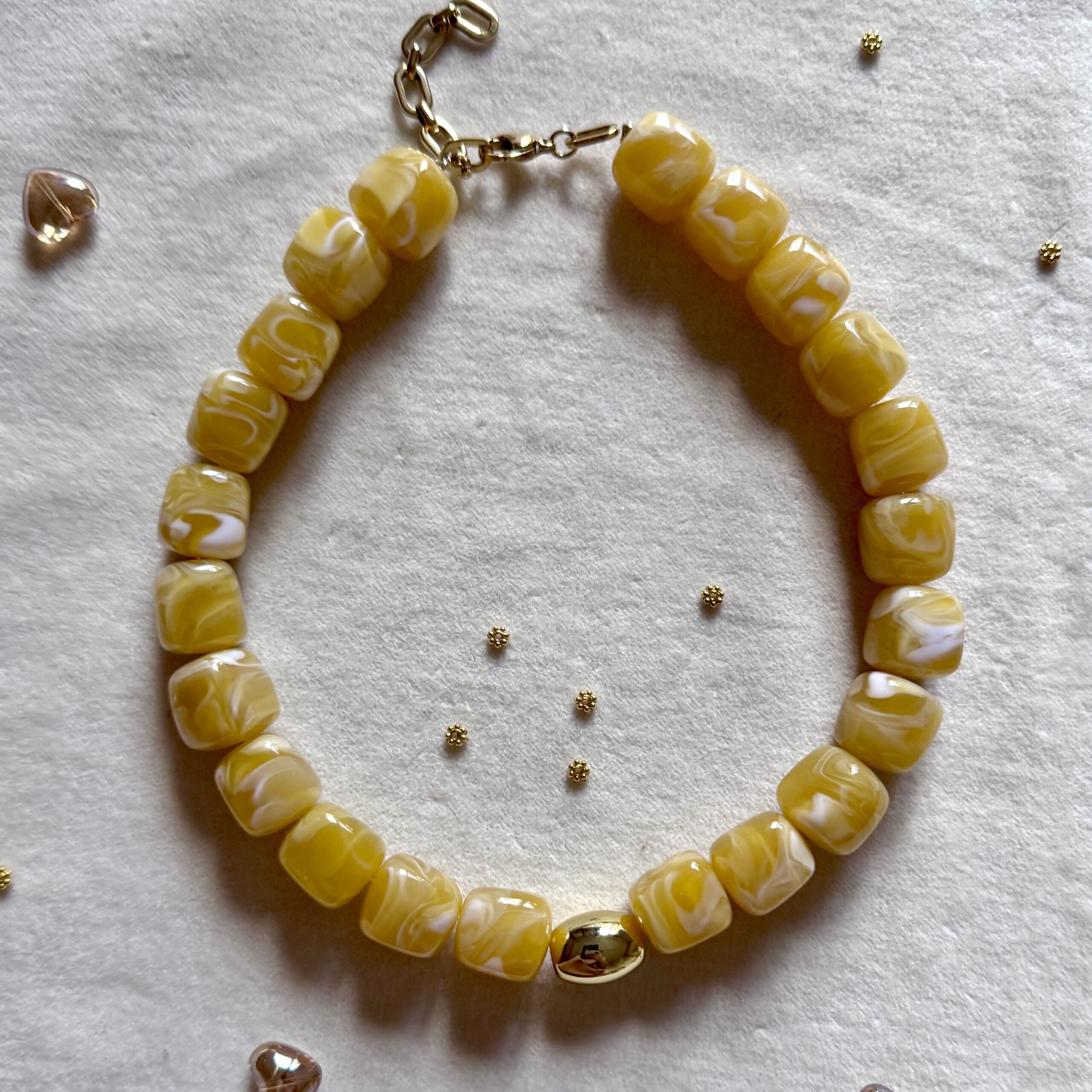 - Collier en en perles acétate et acier inoxydable doré