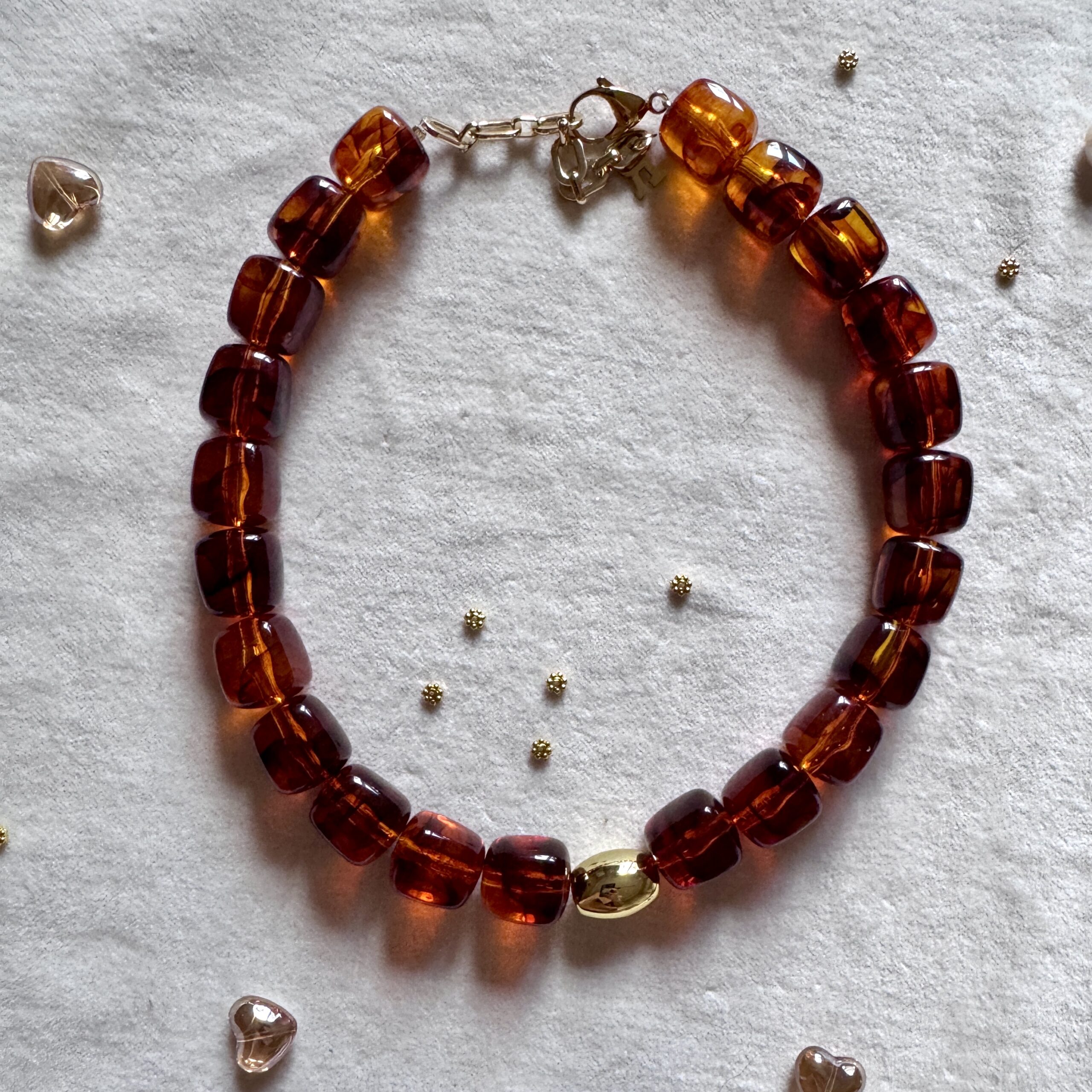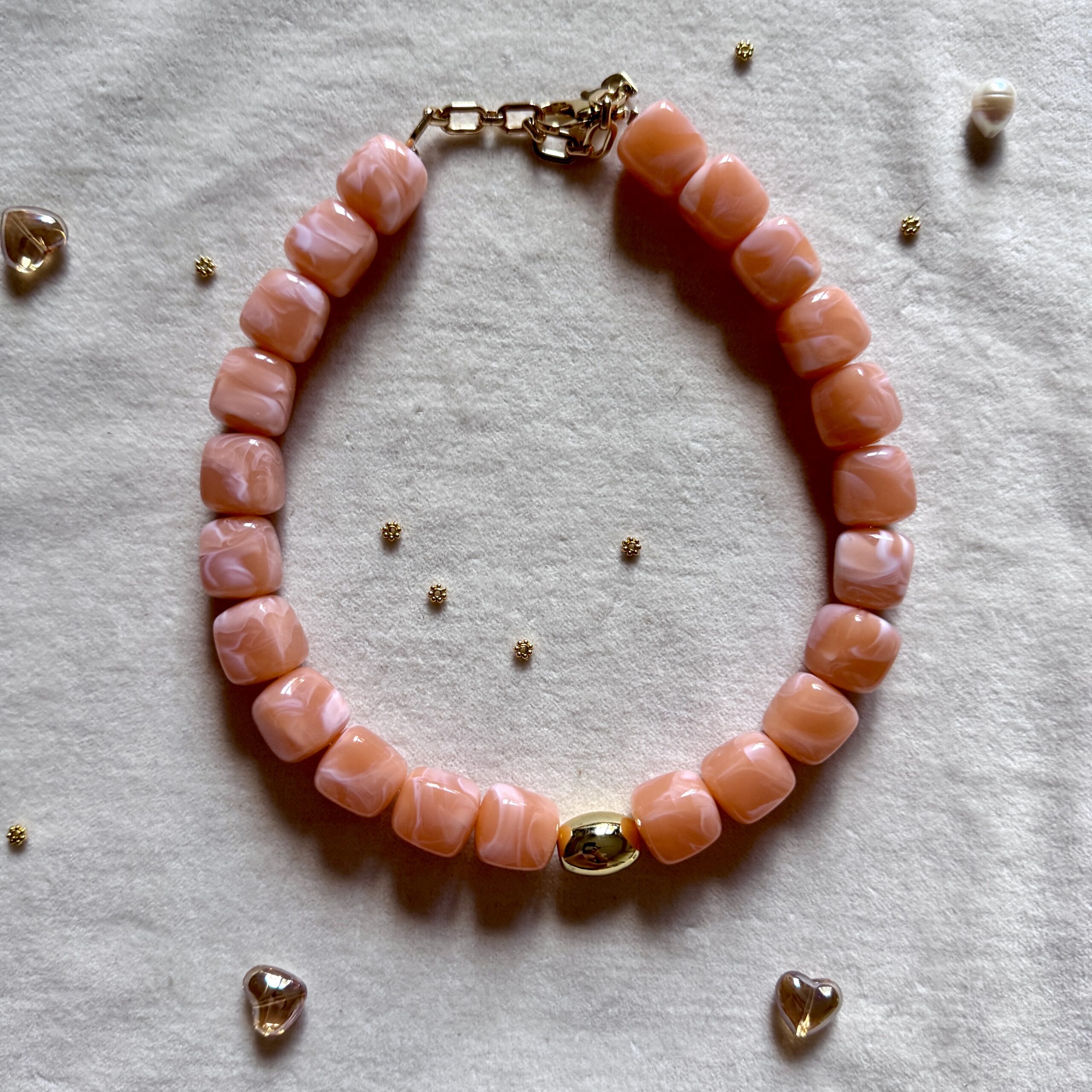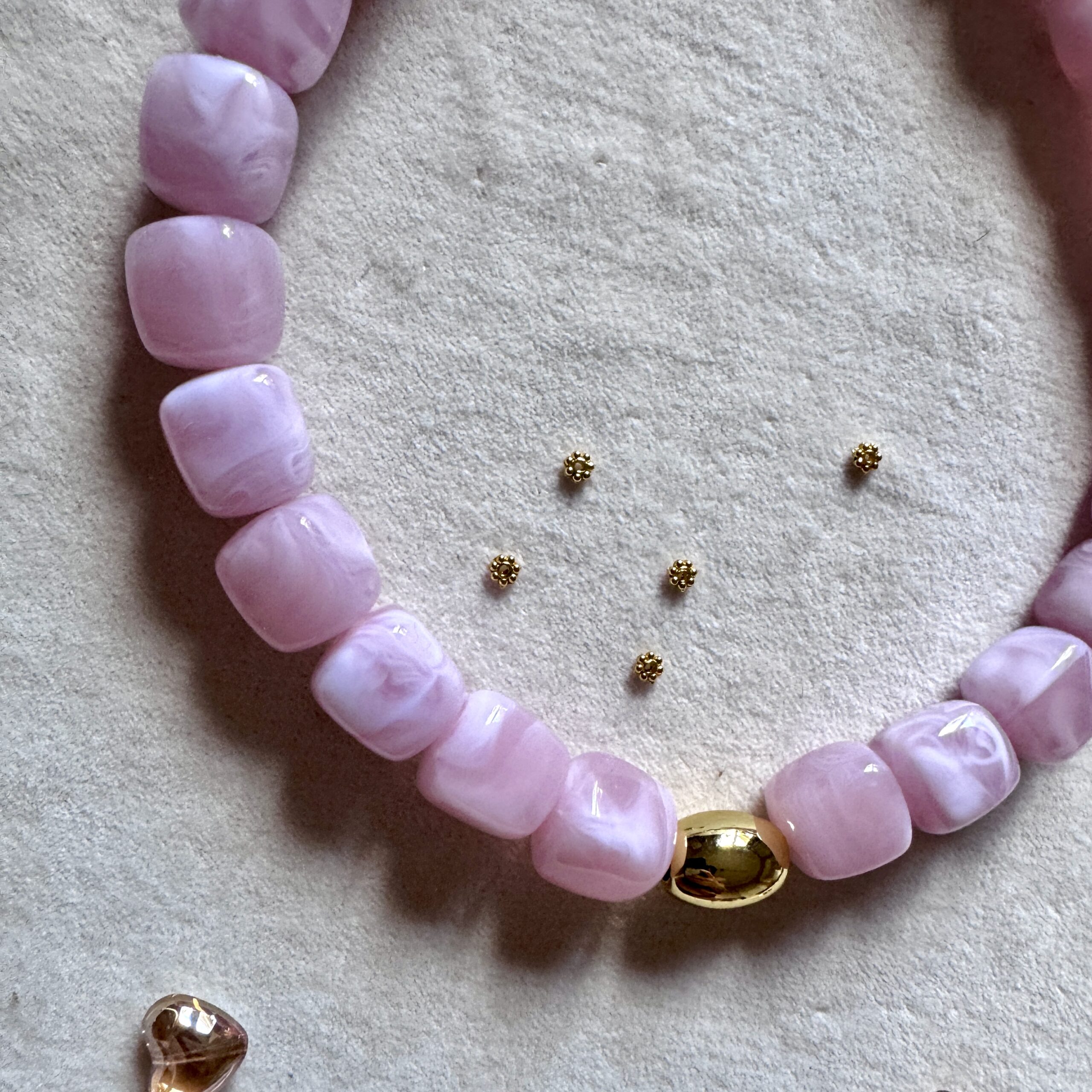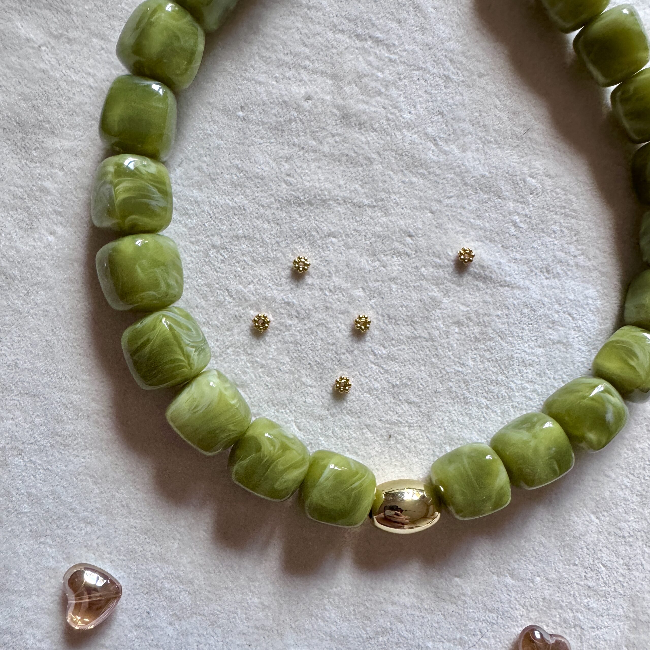 - Collier en en perles acétate et acier inoxydable doré