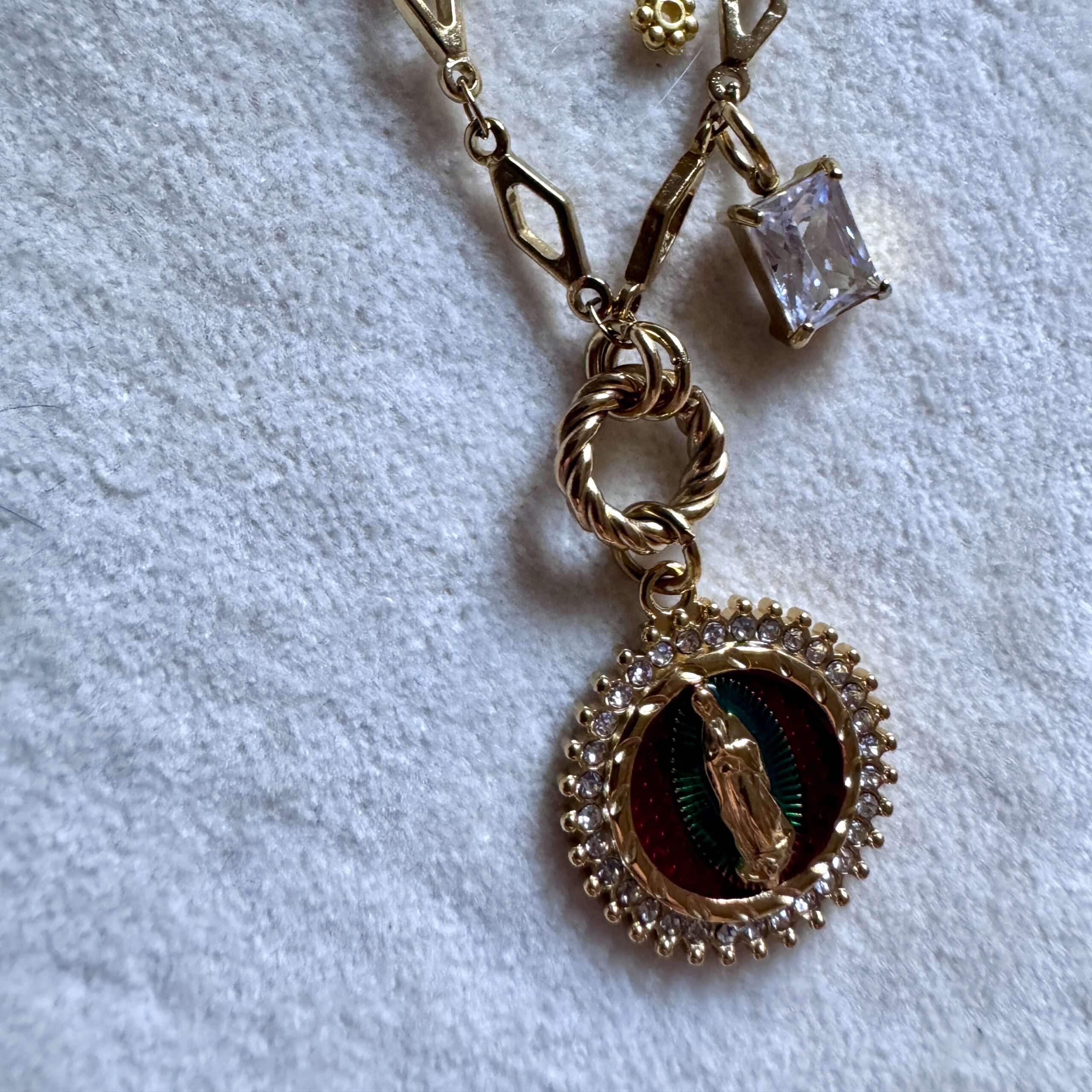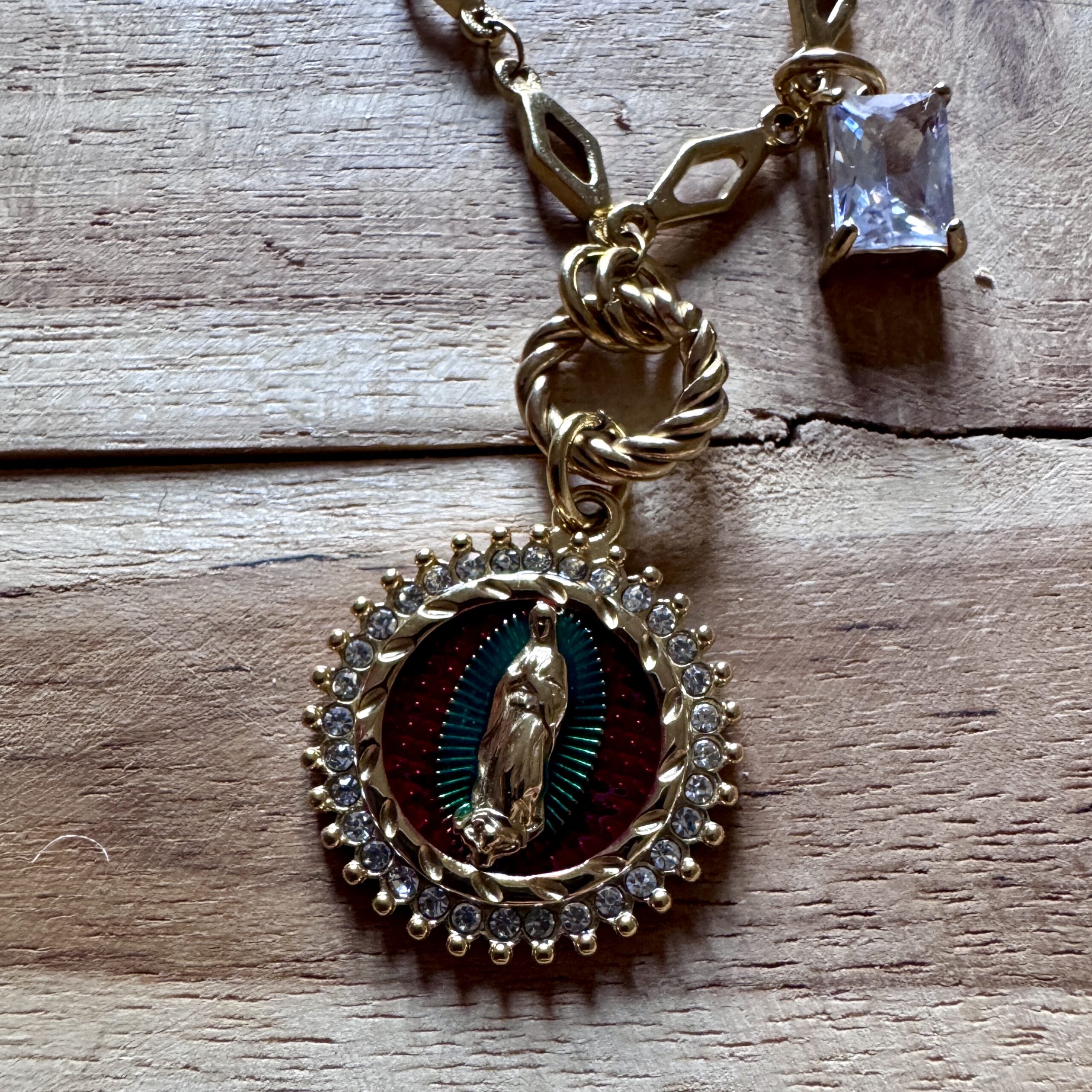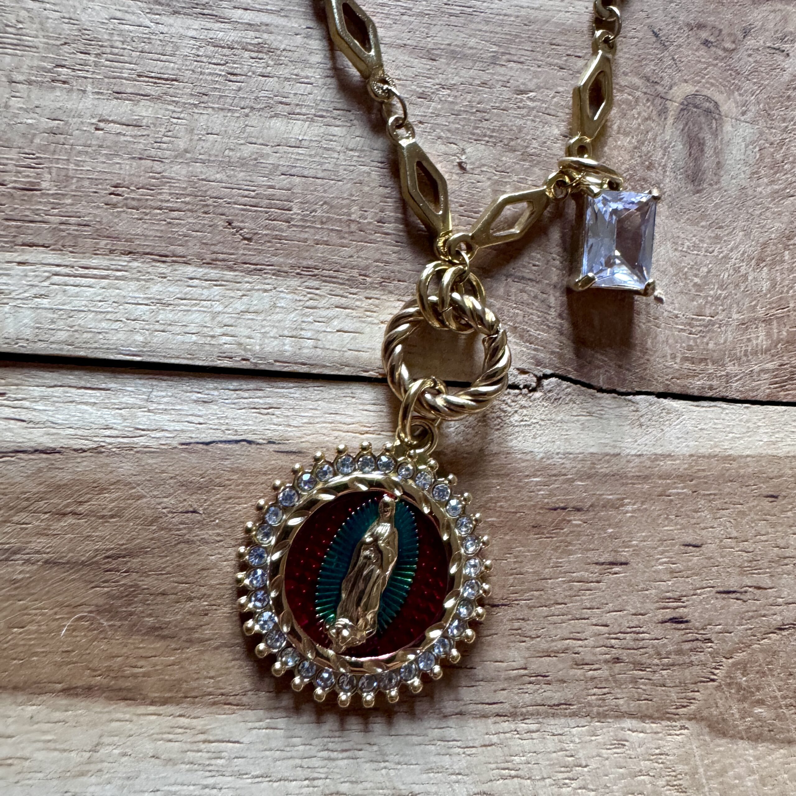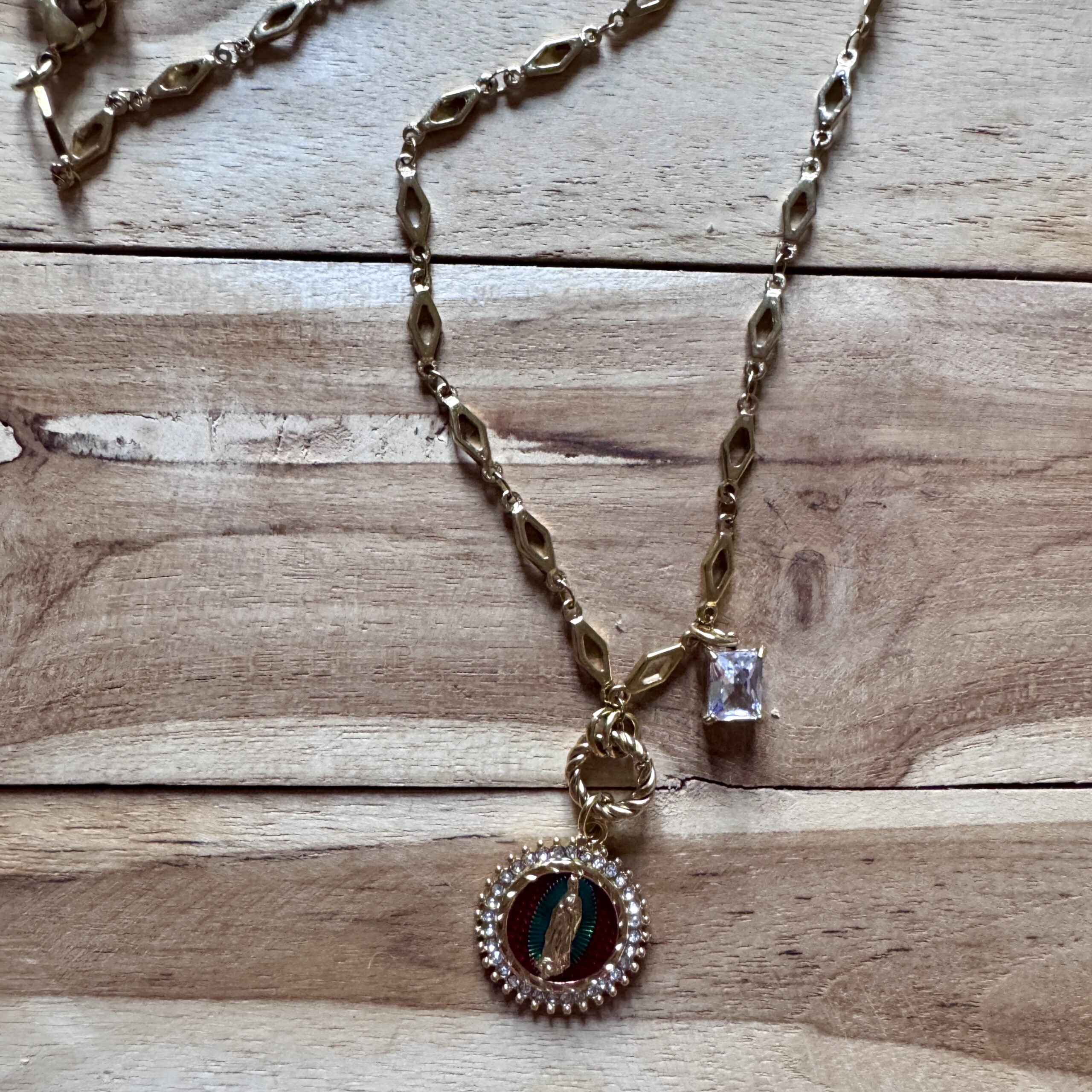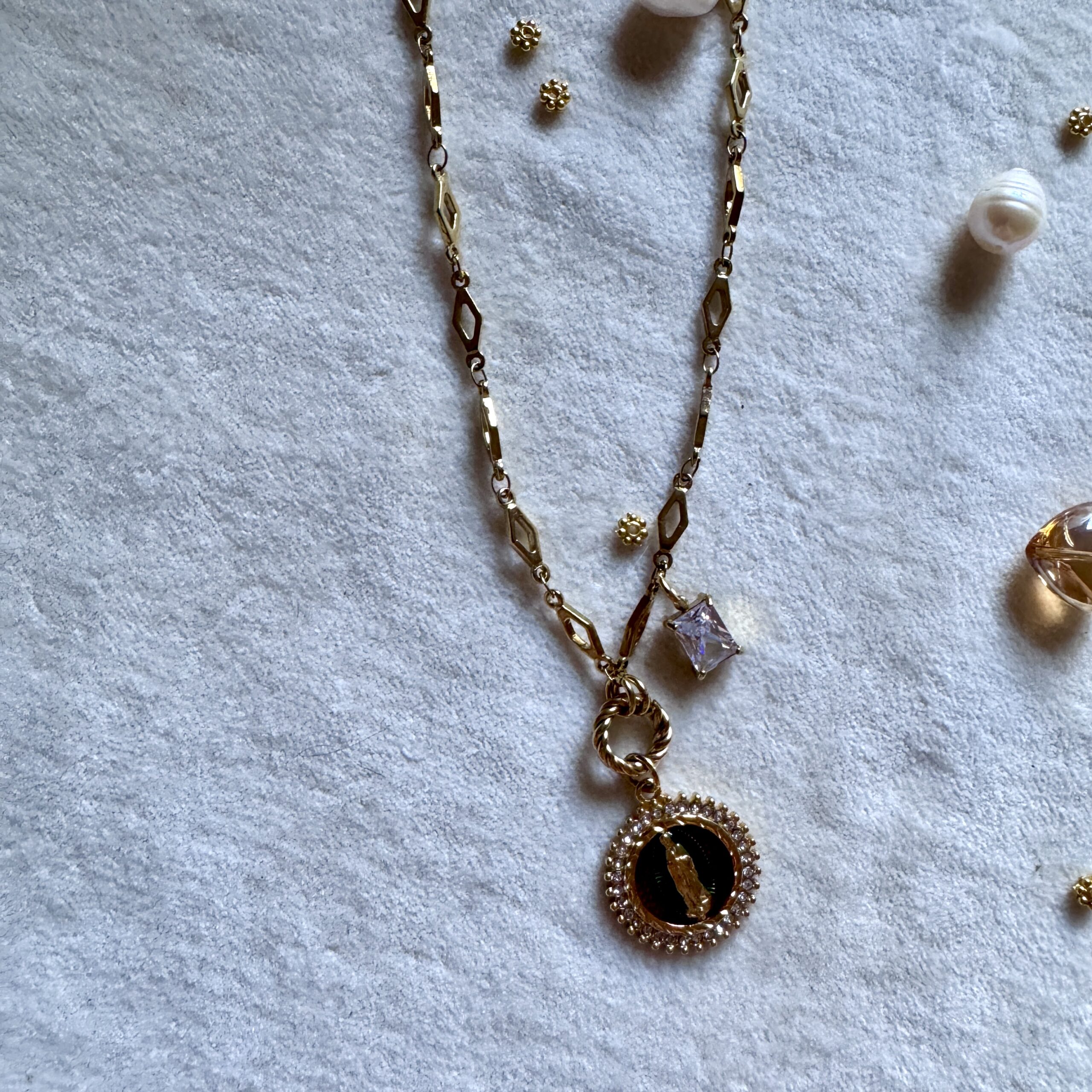 - Collier en acier inoxydable doré et strass